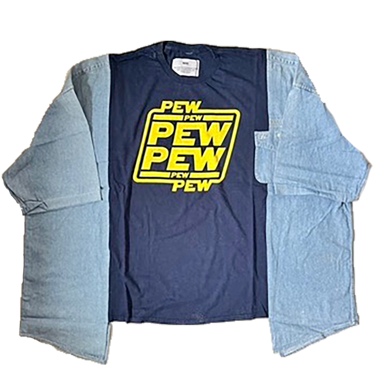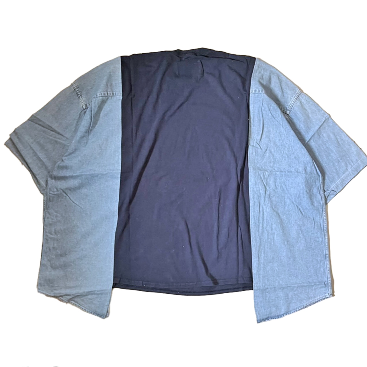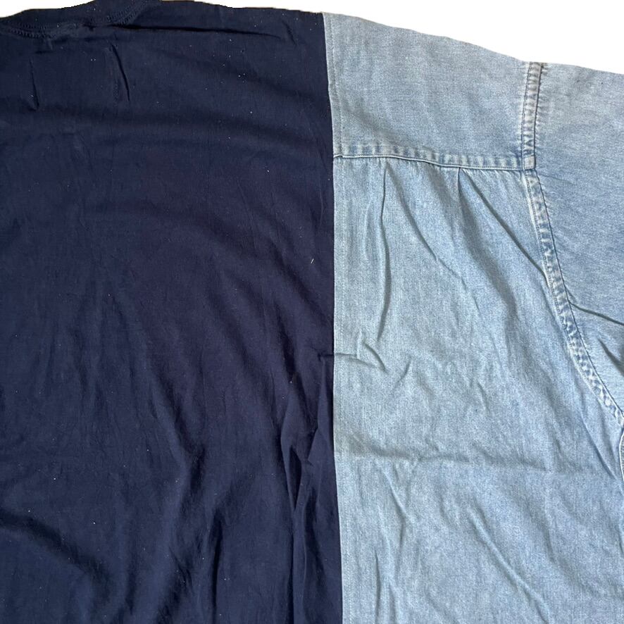 リメイク プリントTシャツ ドッキング デニムシャツ ワイドプルオーバー R-1905T ②(男女兼用)