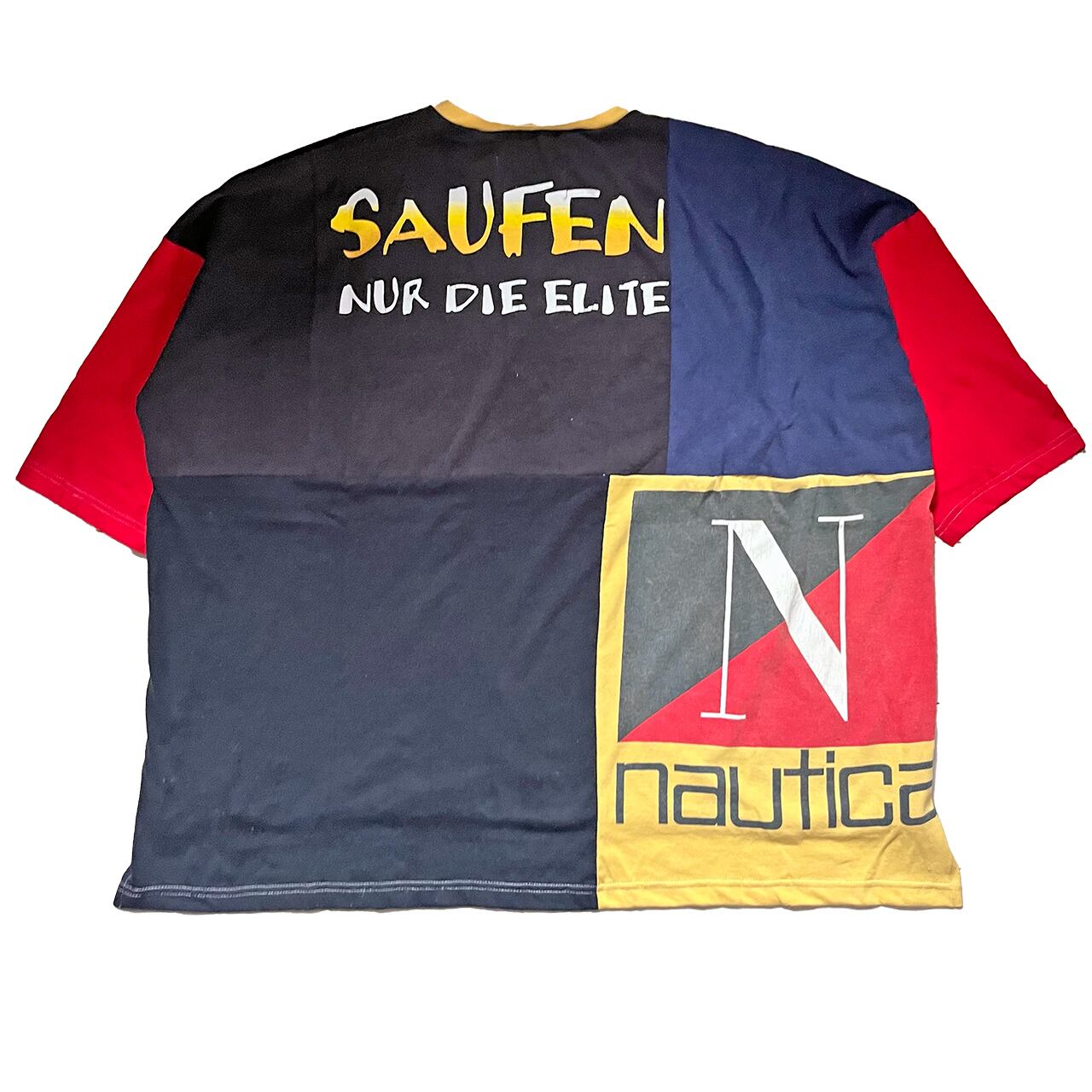 8枚の ユーズドTシャツを使ってパッチワークしてBIGサイズにリメイク。
