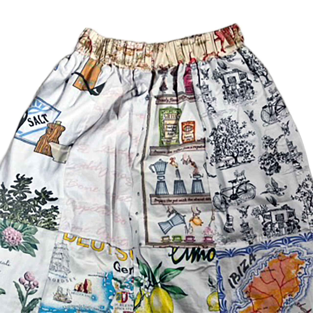 タペストリー用の生地を使ってパッチワークしてスカートにリメイク。