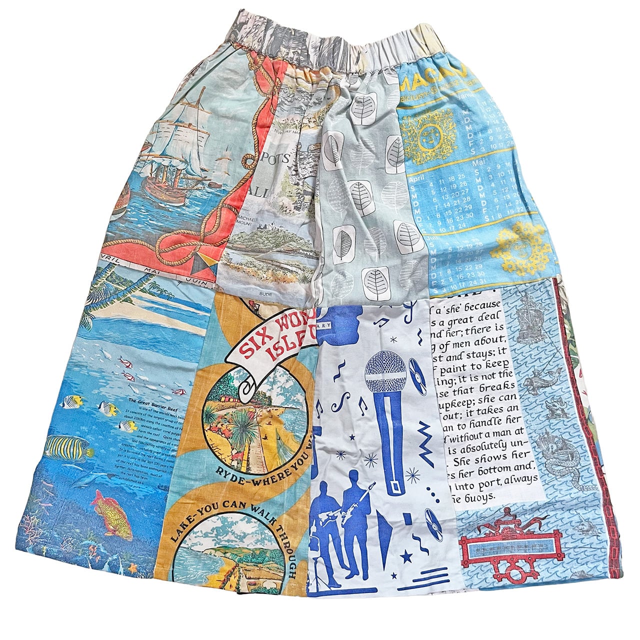 タペストリー用の生地を使ってパッチワークしてスカートにリメイク。