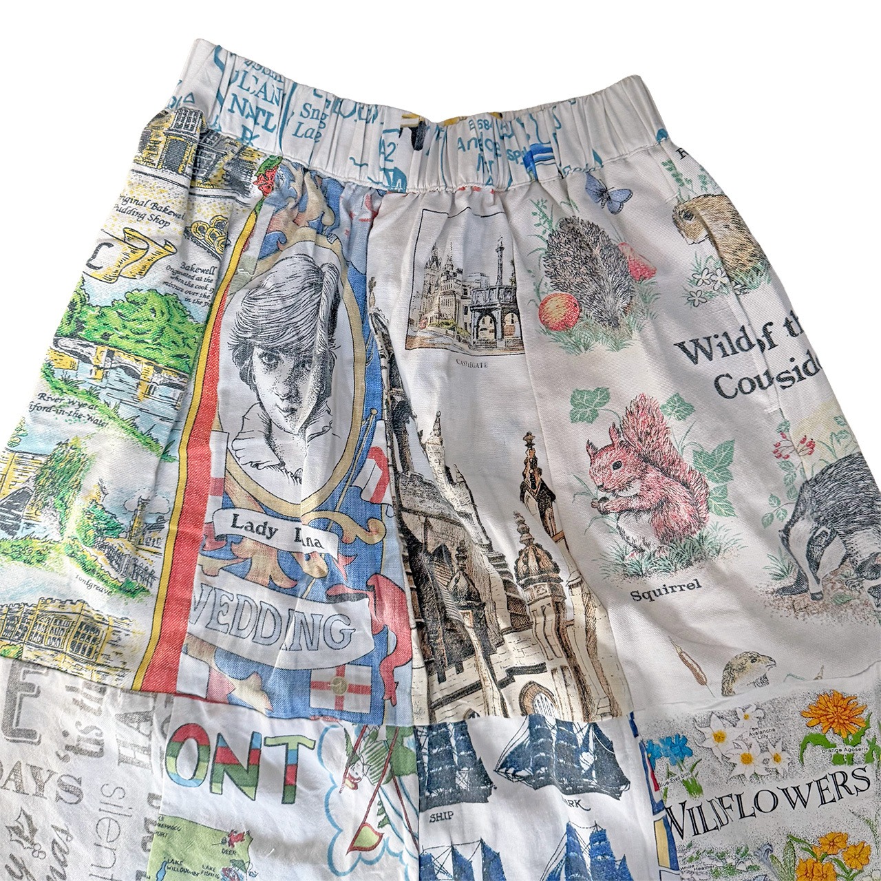 様々なタペストリー生地のプリントの柄がパッチワークされリメイクならではの面白さがつまった仕上がりです。