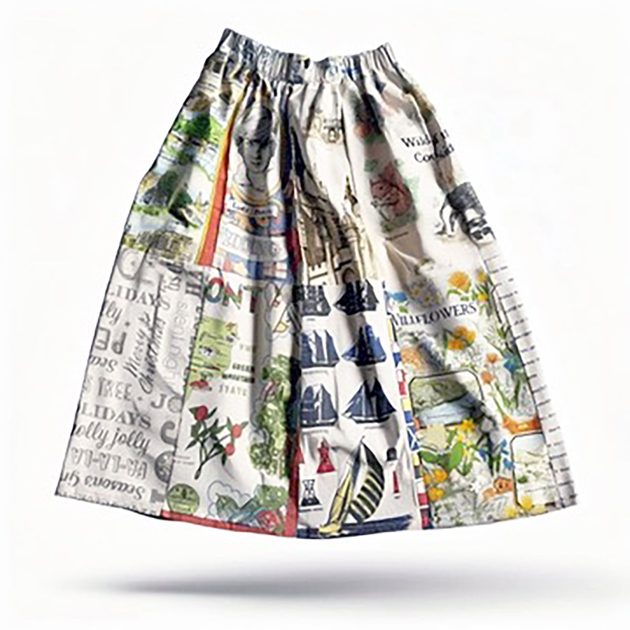 タペストリー用の生地を使ってパッチワークしてスカートにリメイク。
