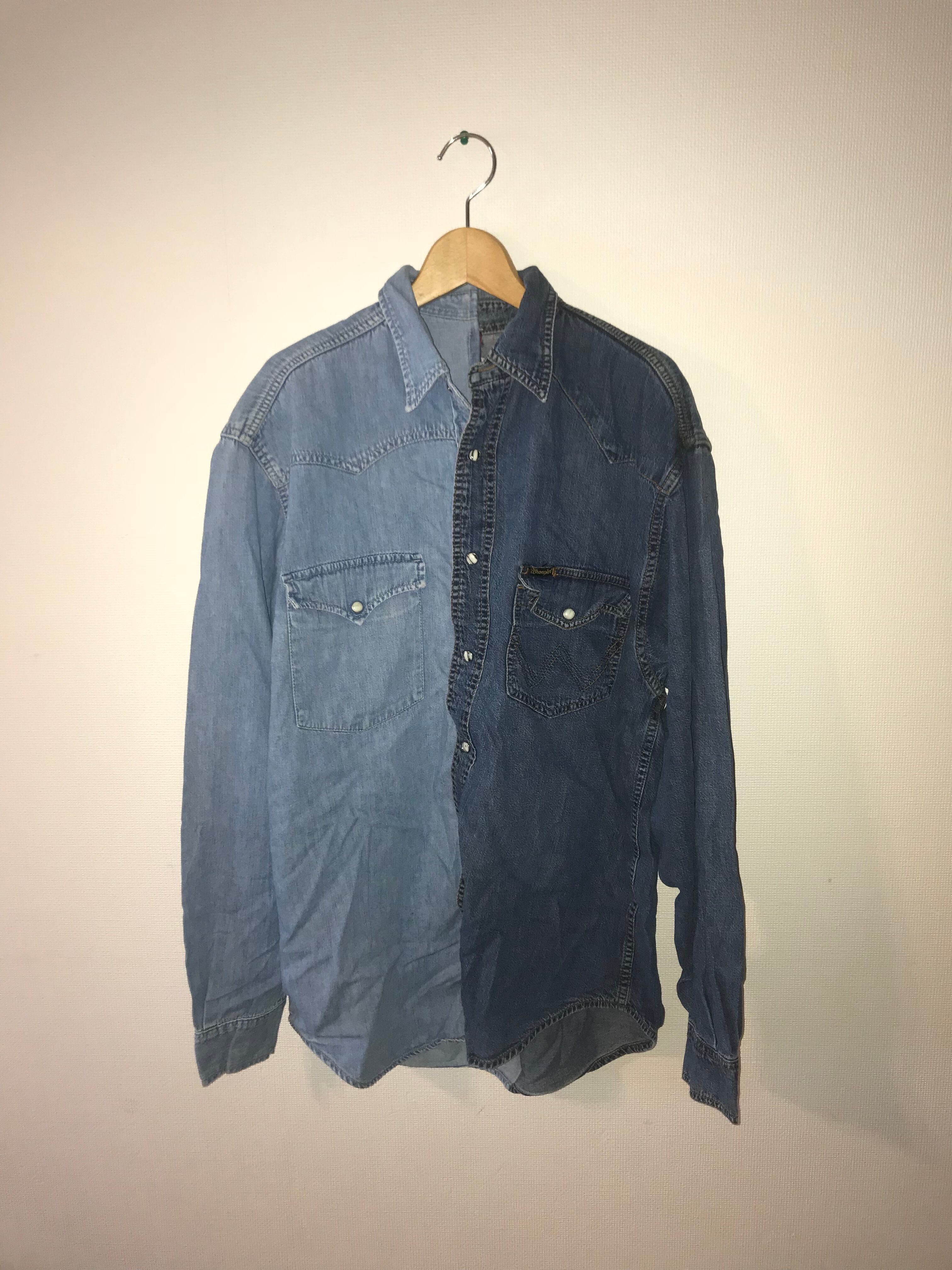 ユーズドのデニムシャツを2枚使用した、リメイク