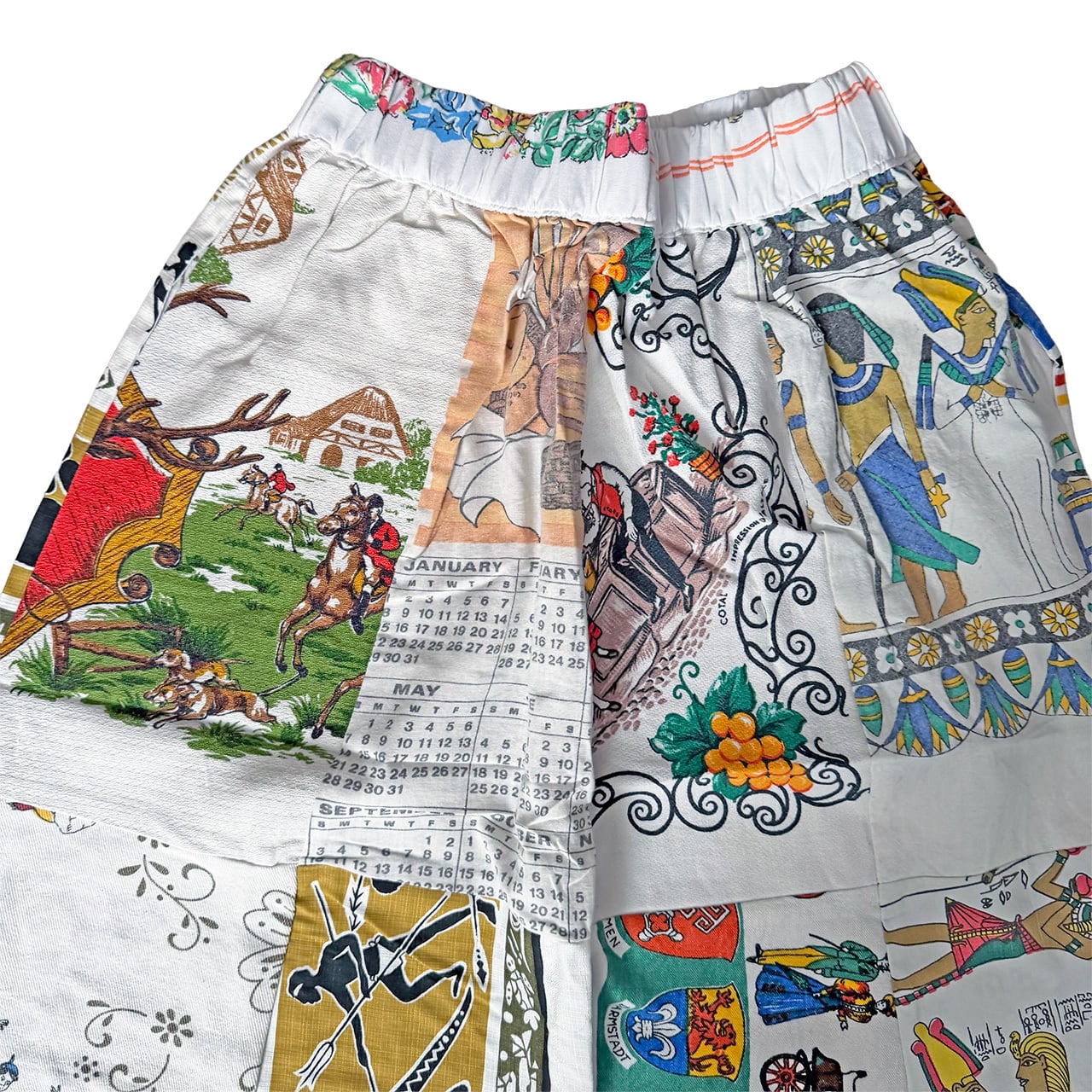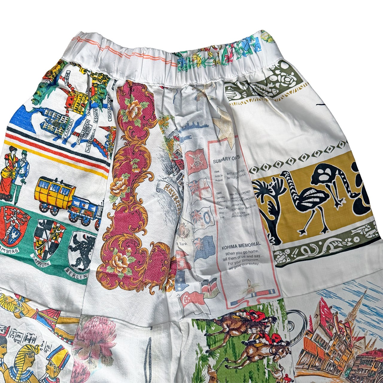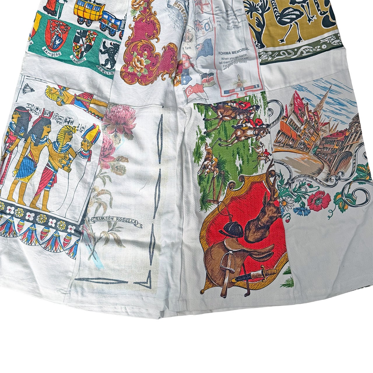 様々なタペストリー生地のプリントの柄がパッチワークされリメイクならではの面白さがつまった仕上がりです。