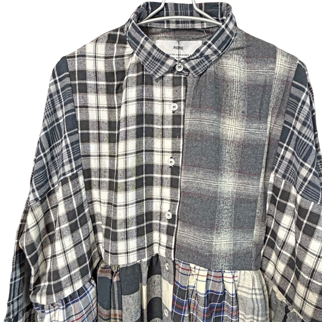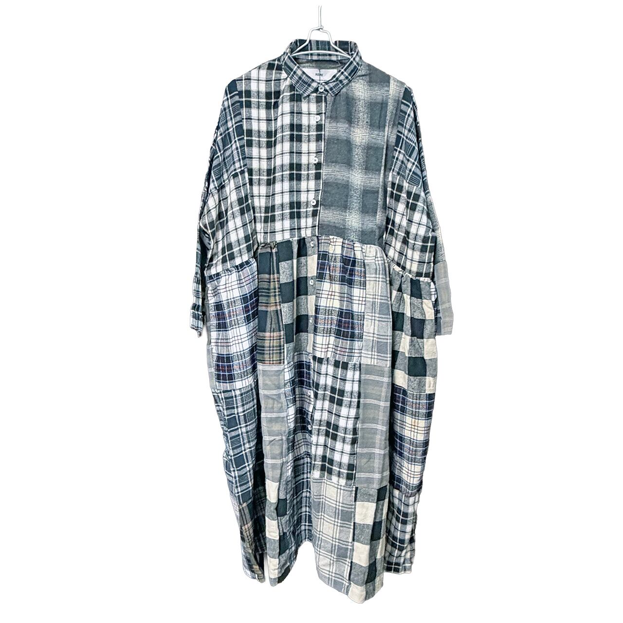 リメイク ワイド チェックワンピースR-2007AG ④エコ サステナビリティ ヴィンテージ 再構築 一点物