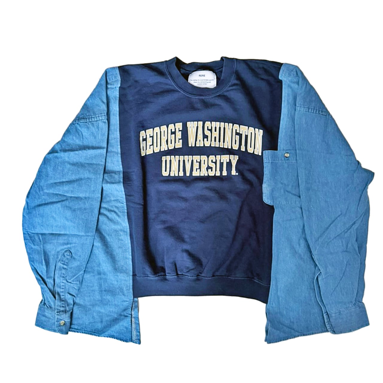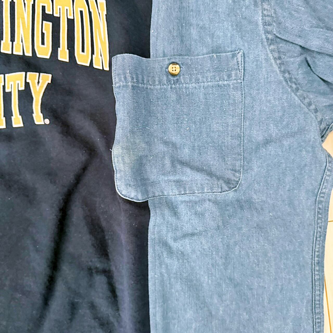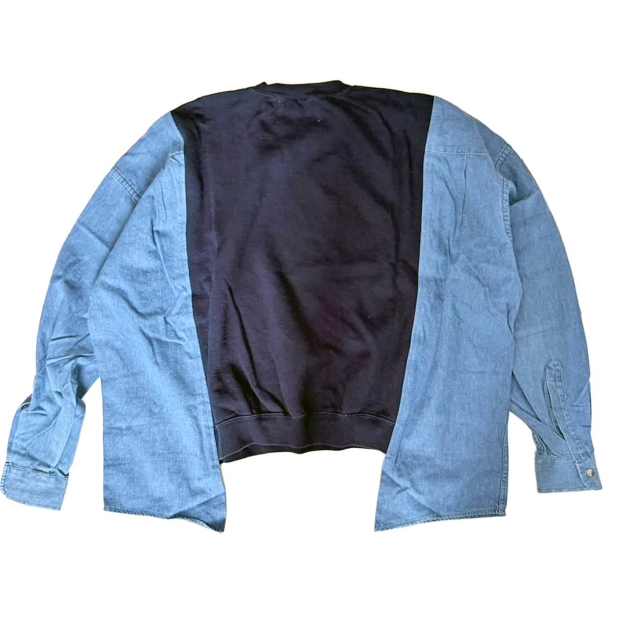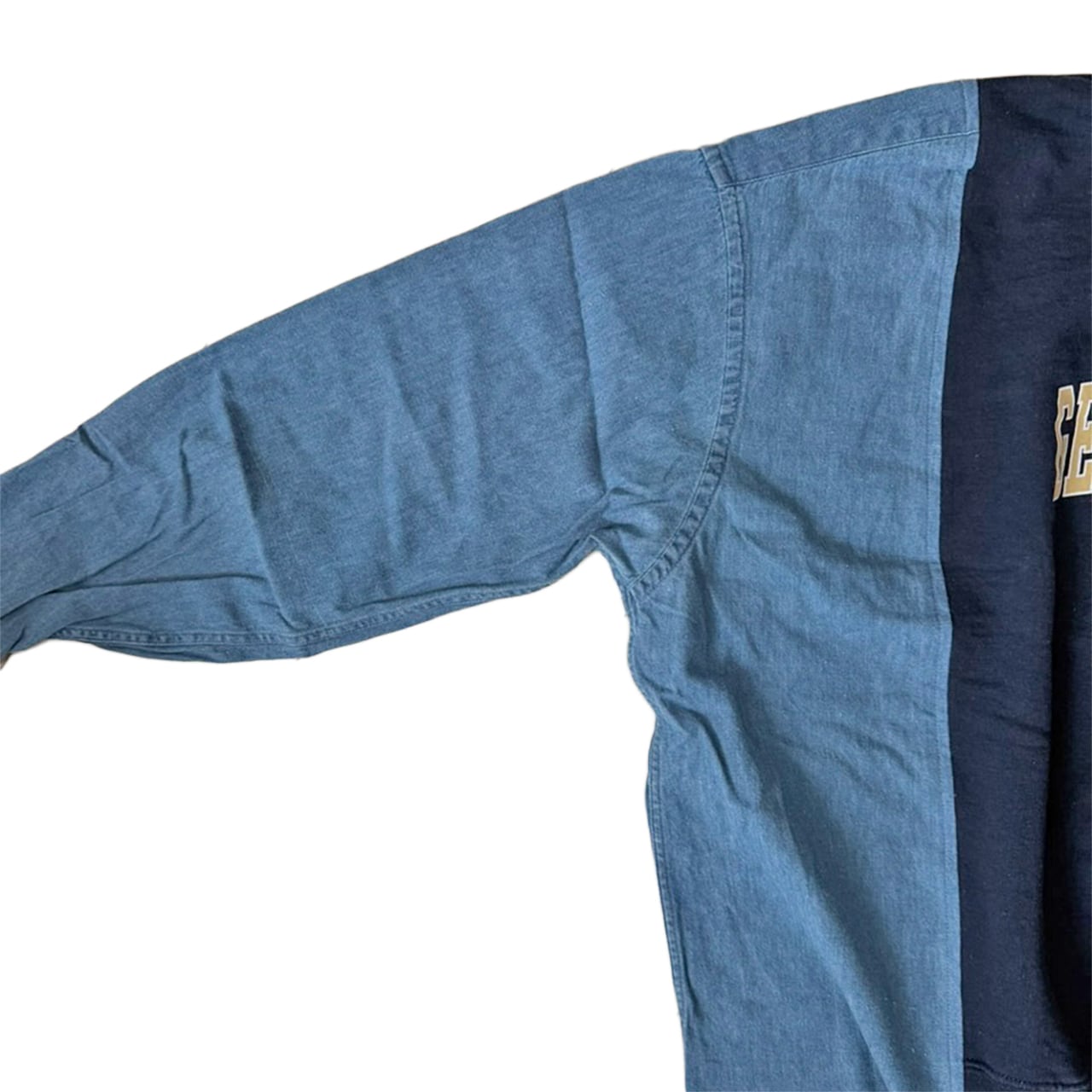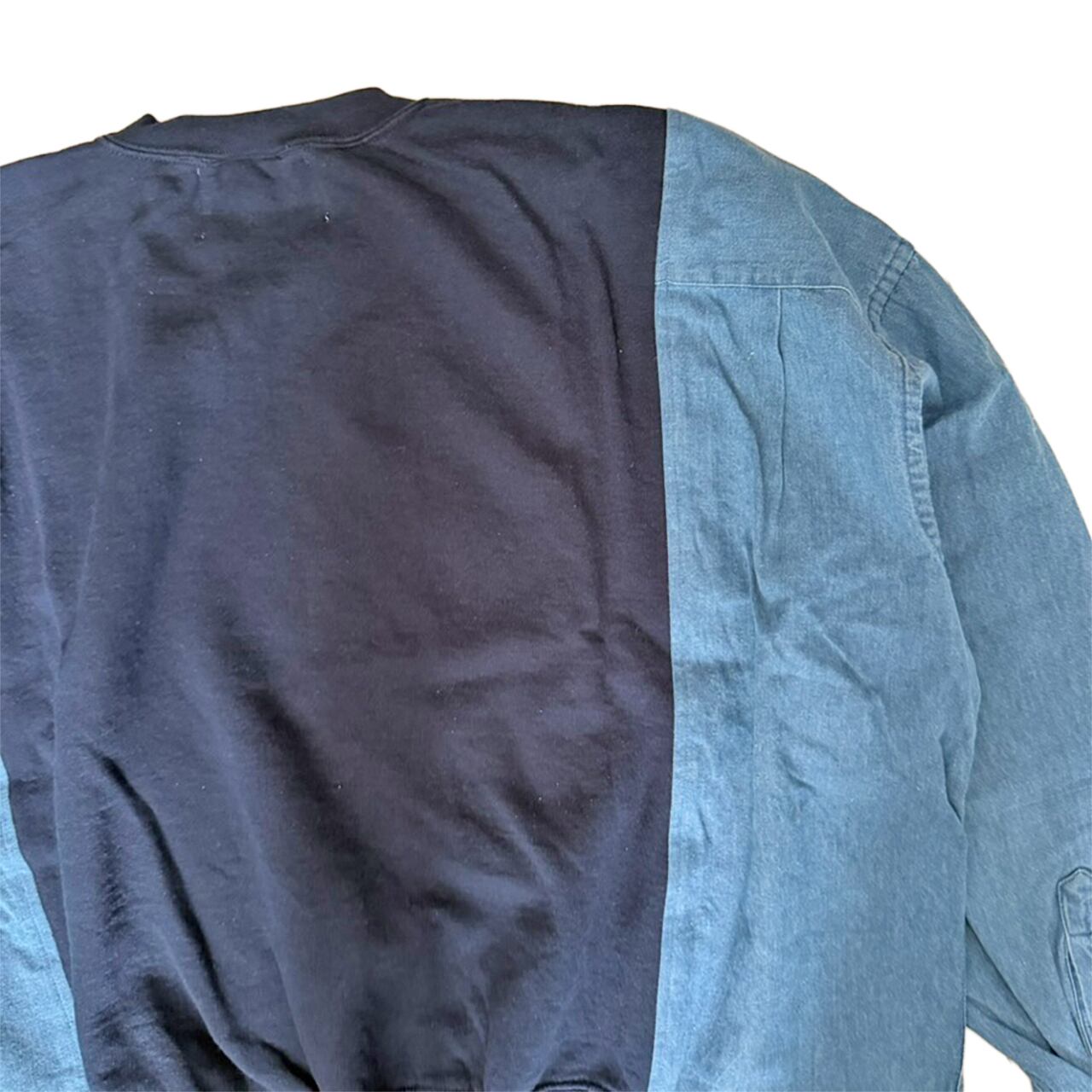 リメイク スウェット x デニムシャツ ワイドプルオーバー(男女兼用)R-1874C ⑤ エコ サステナビリティ ヴィンテージ 再構築 一点物
