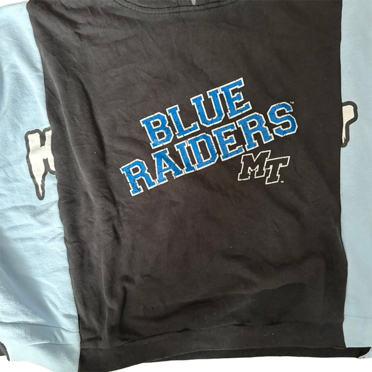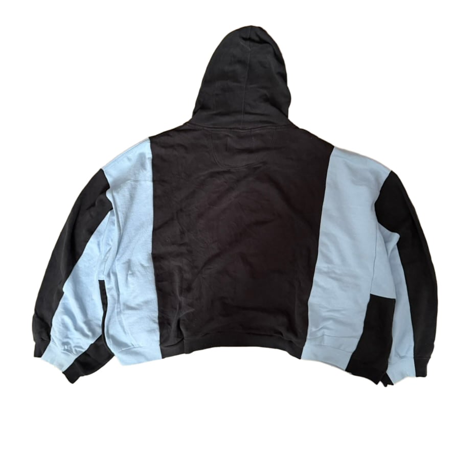 リメイク ワイドスウェット HOODIE(SAX/BLACK) R-2356AB ⑤ (男女兼用)アップサイクル サステナビリティ ヴィンテージ 再構築 一点物