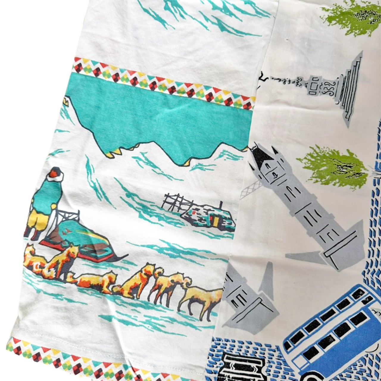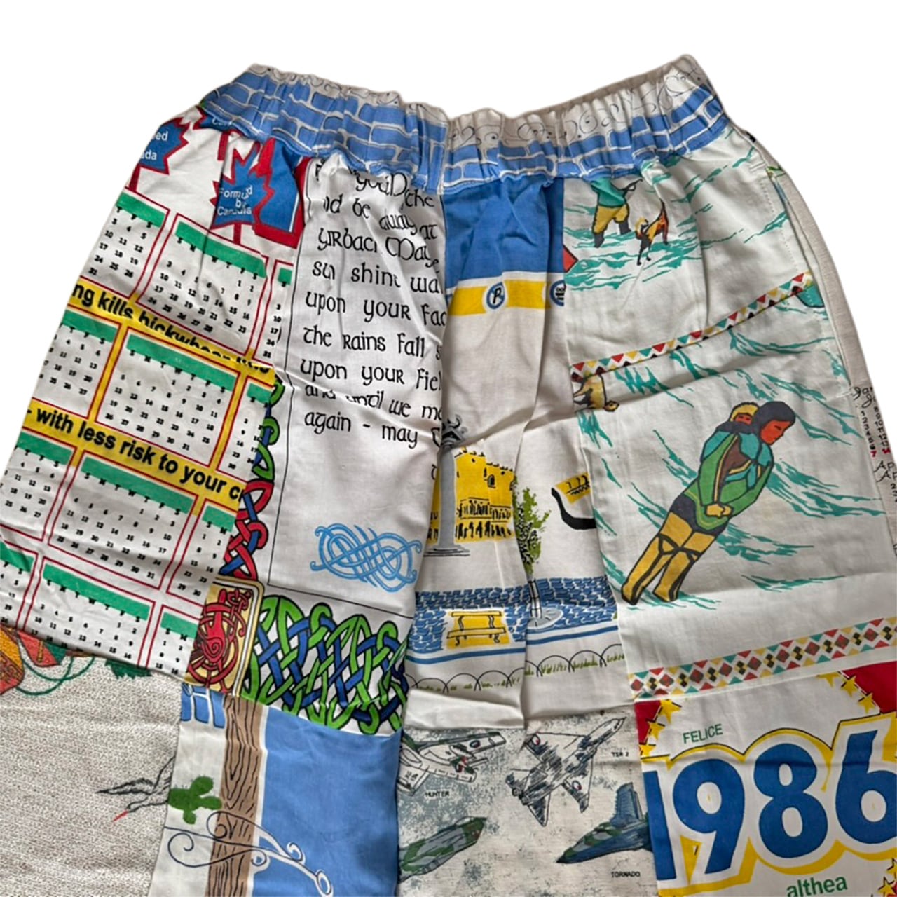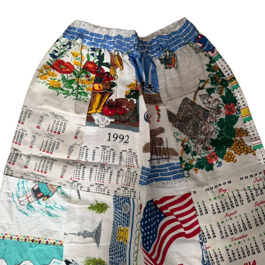 様々なタペストリー生地のプリントの柄がパッチワークされリメイクならではの面白さがつまった仕上がりです。
