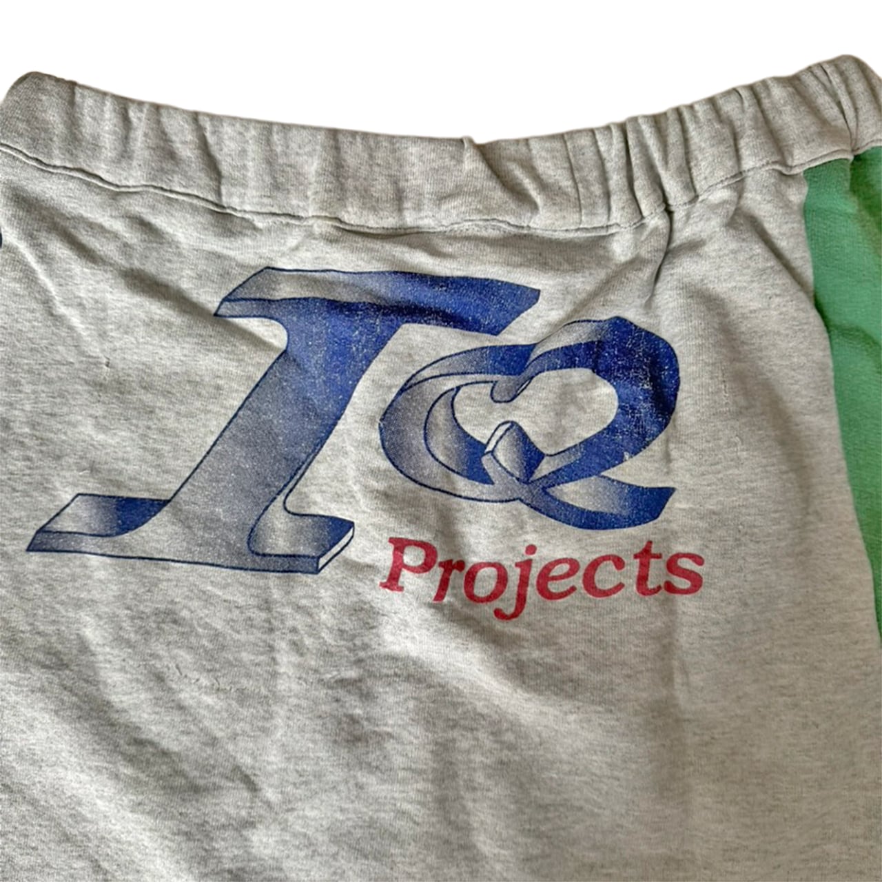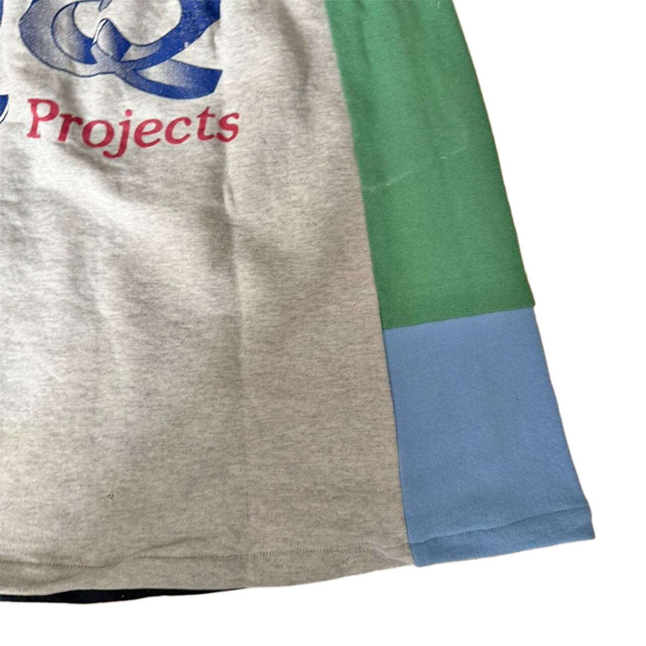 様々なスウェットのプリントの柄がパッチワークされリメイクならではの面白さがつまった仕上がりです。