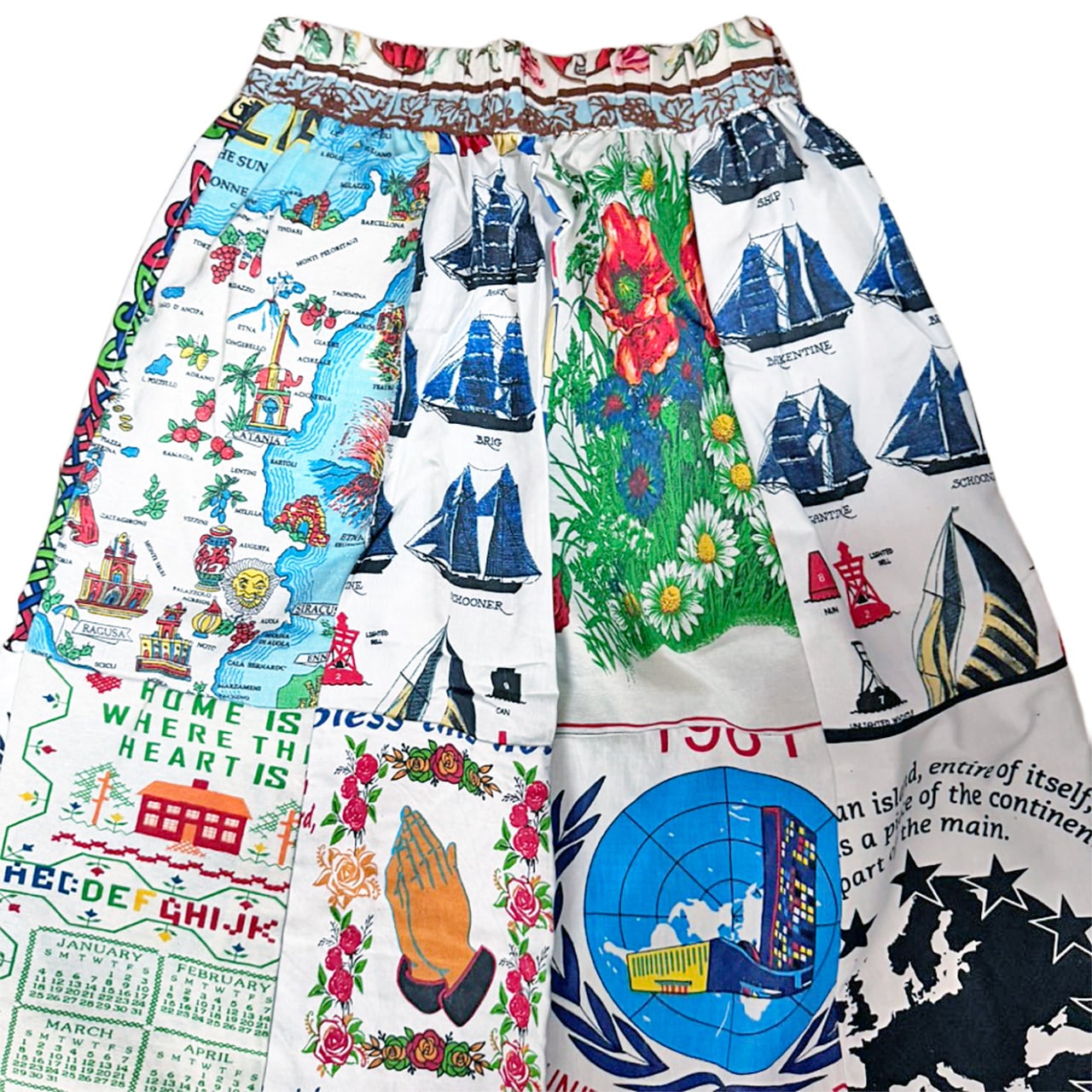 タペストリー用の生地を使ってパッチワークしてスカートにリメイク。