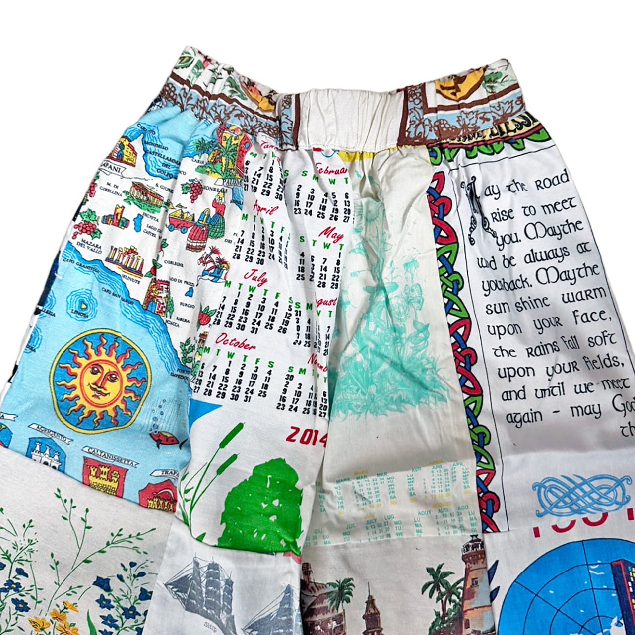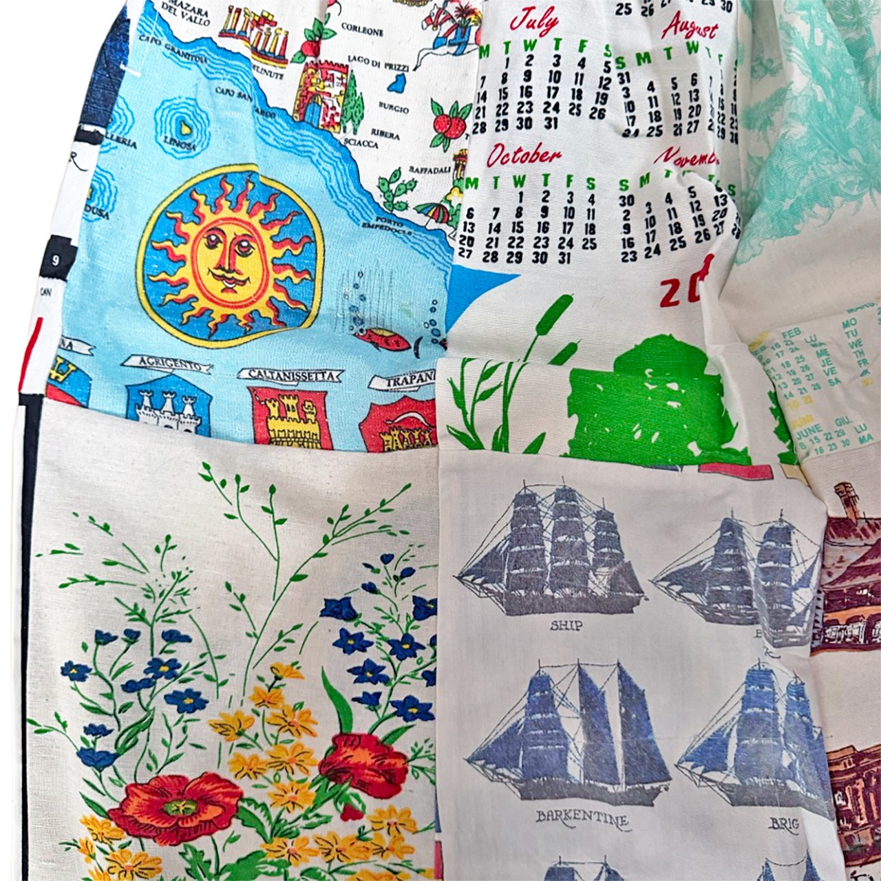 様々なタペストリー生地のプリントの柄がパッチワークされリメイクならではの面白さがつまった仕上がりです。