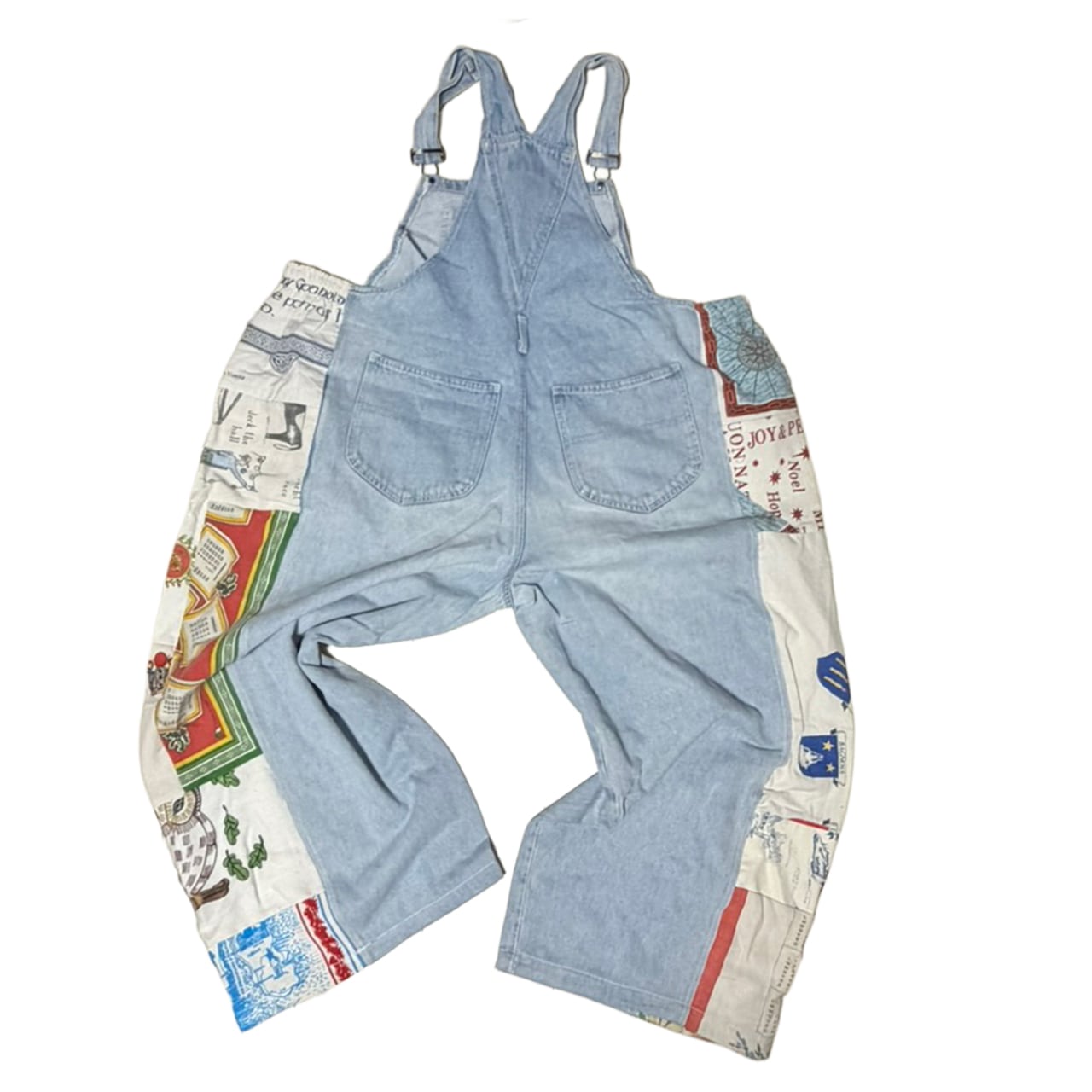 リメイク デニムオーバーオール タペストリー切り替え R-2552TE⑤(男女兼用)エコ サステナビリティ ヴィンテージ 再構築 一点物
