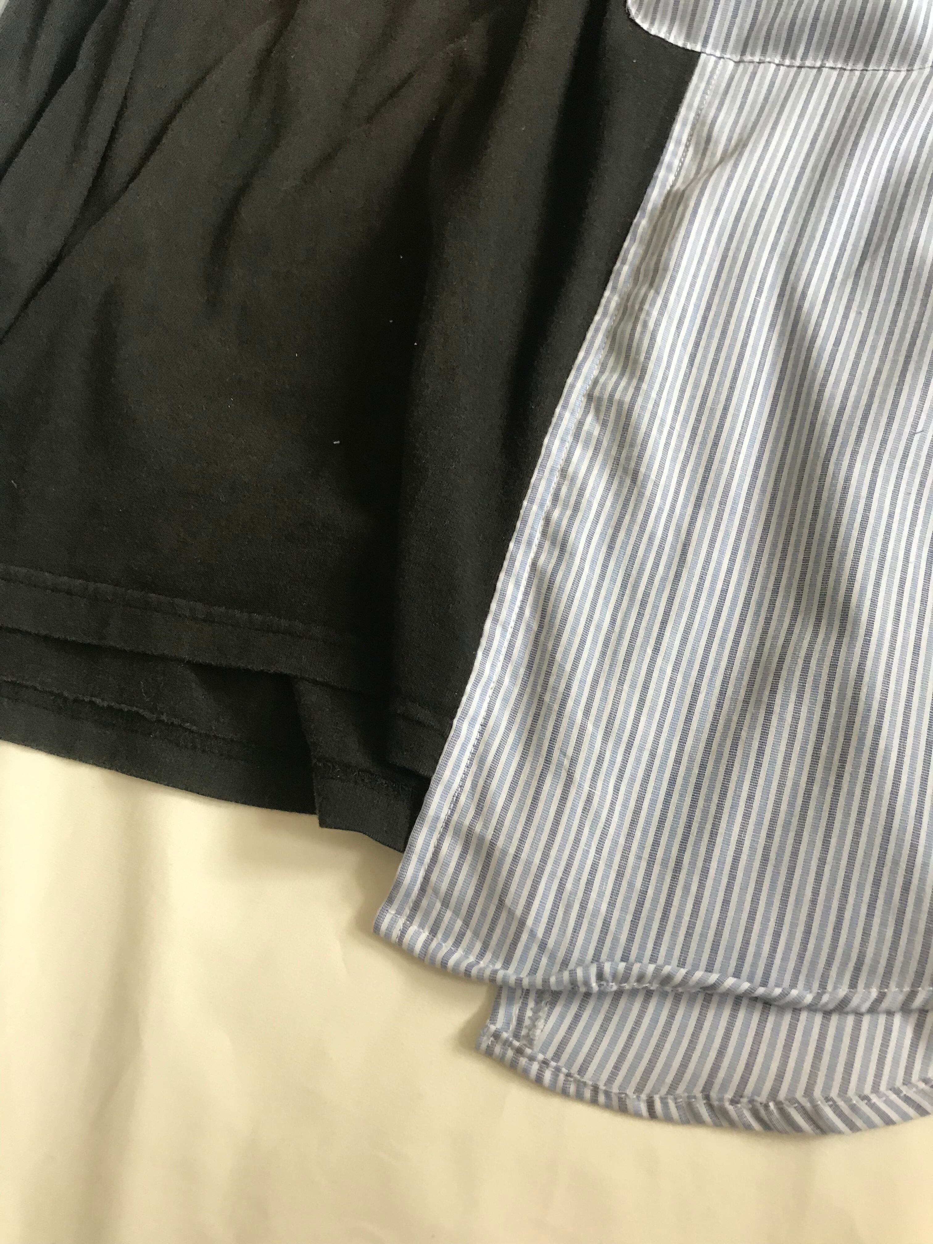 リメイク 半袖ユーズドTシャツ+ストライプシャツ