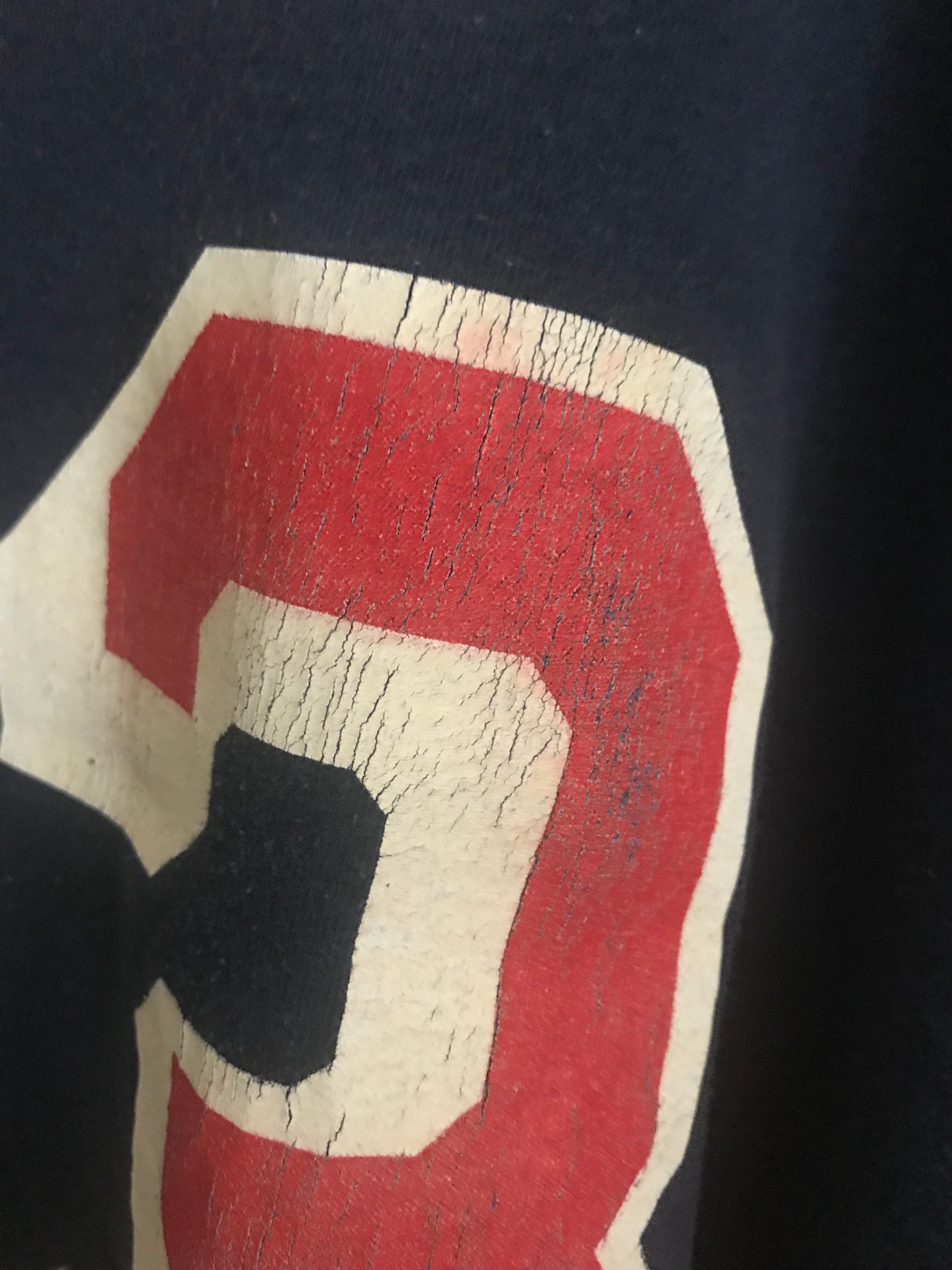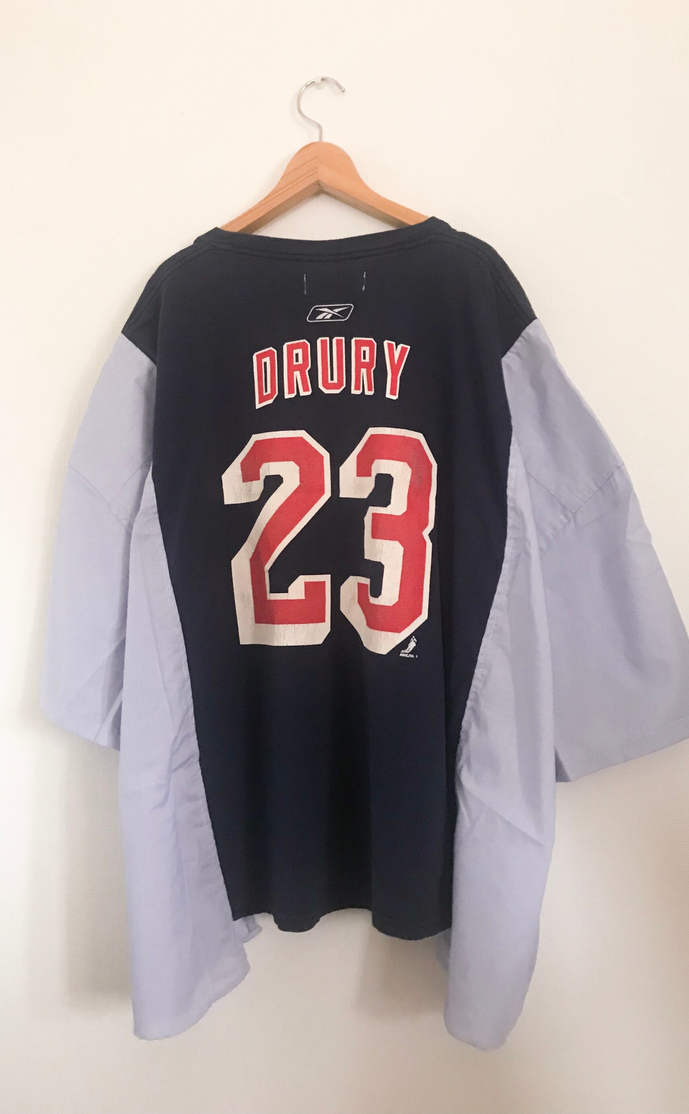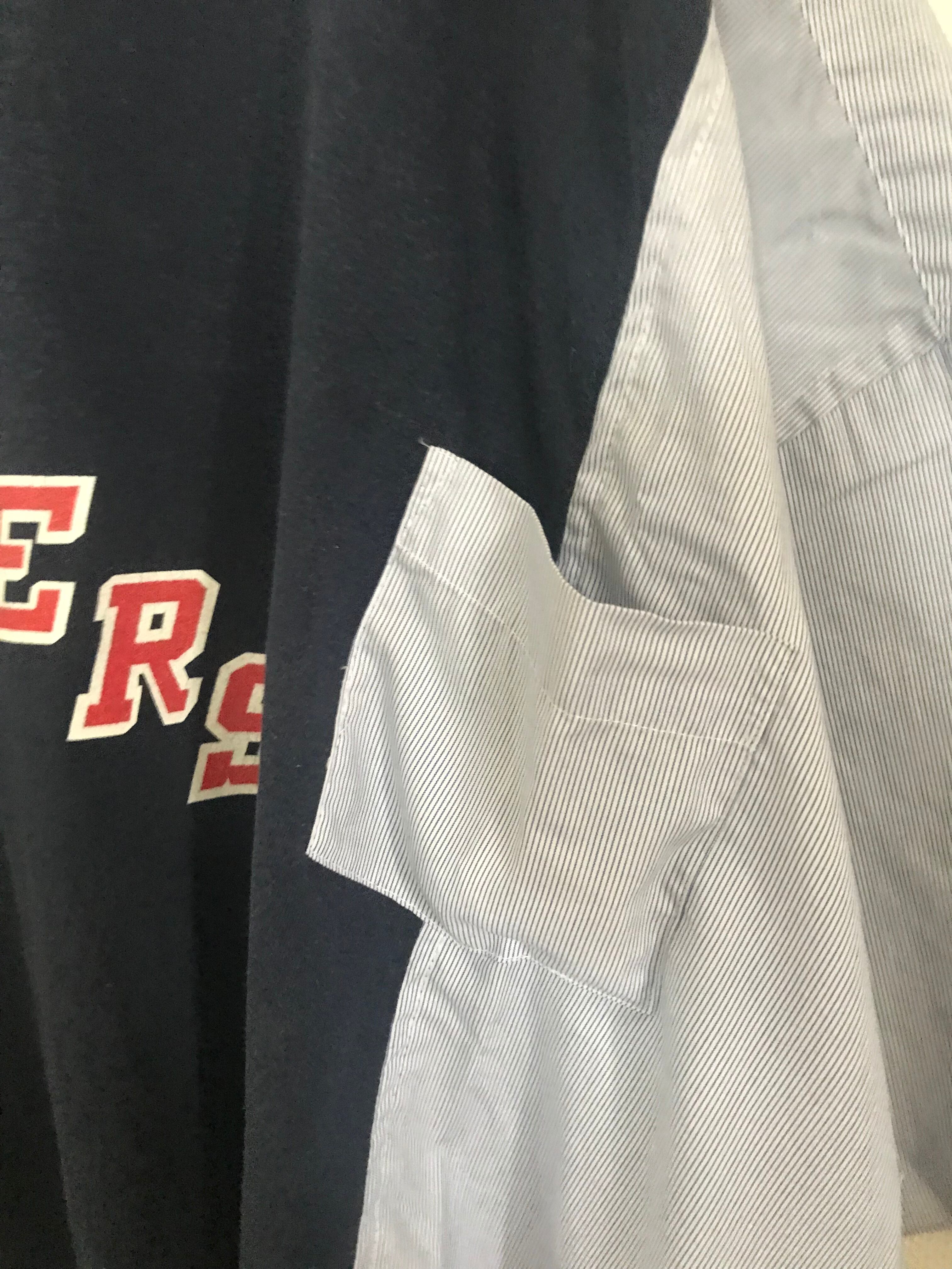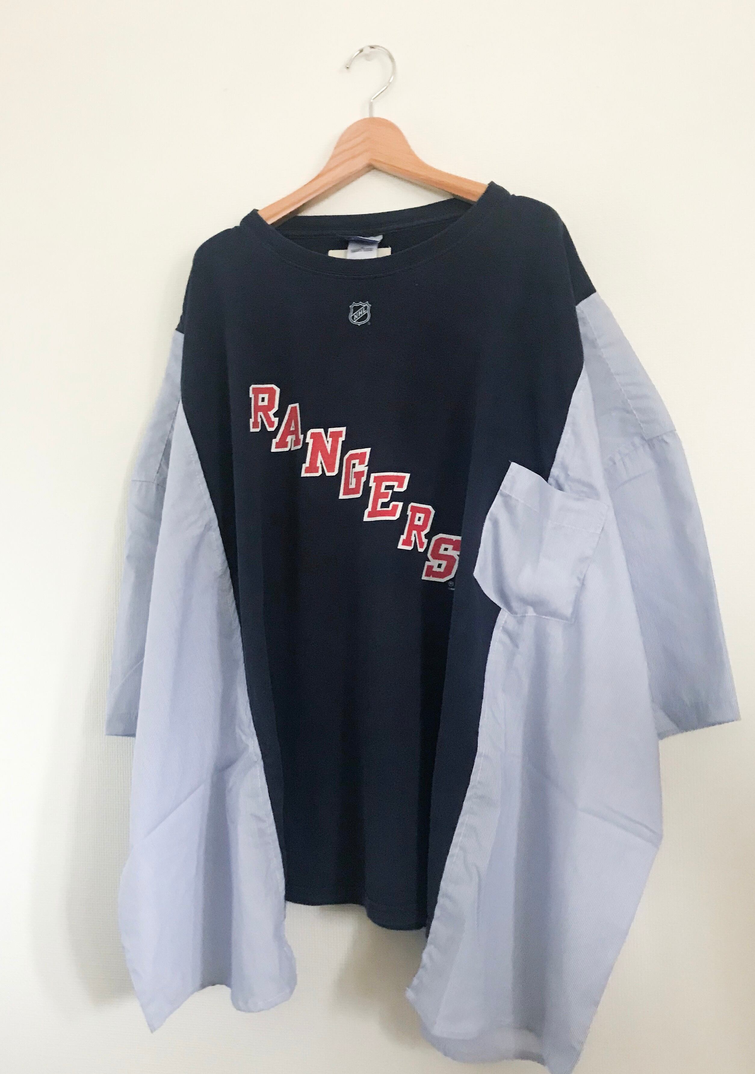 見頃にNY RANGERS(Reebok) のTシャツ袖にストライプシャツを使ってBIGサイズにリメイク。