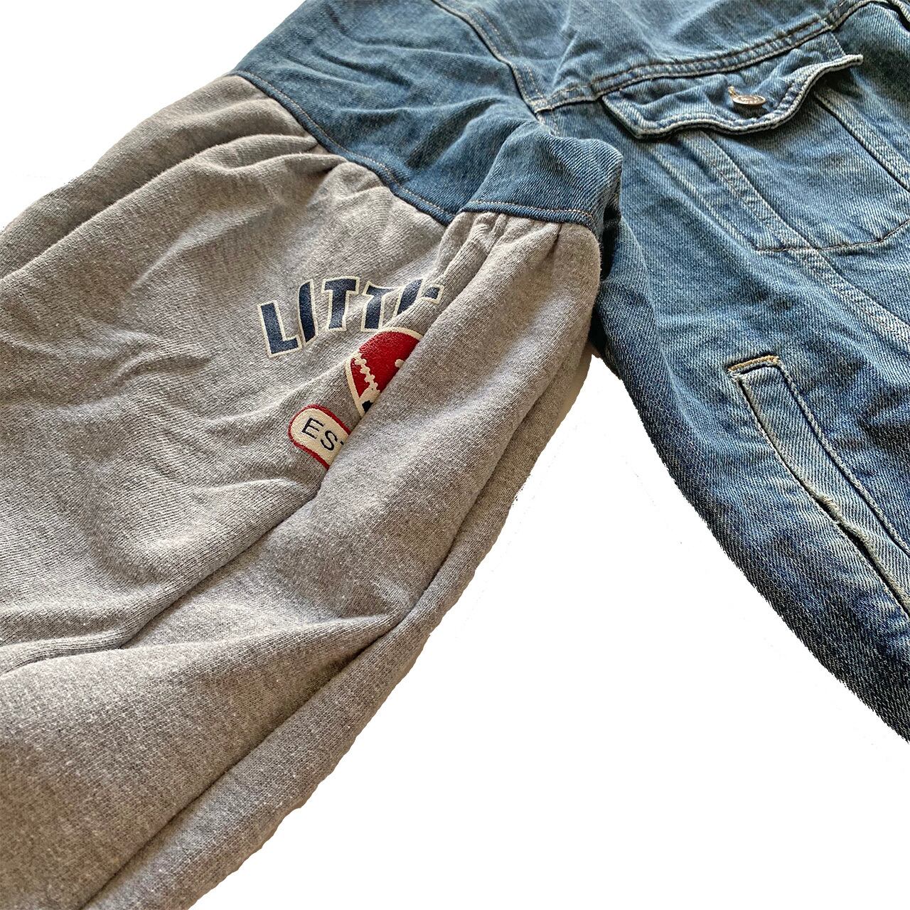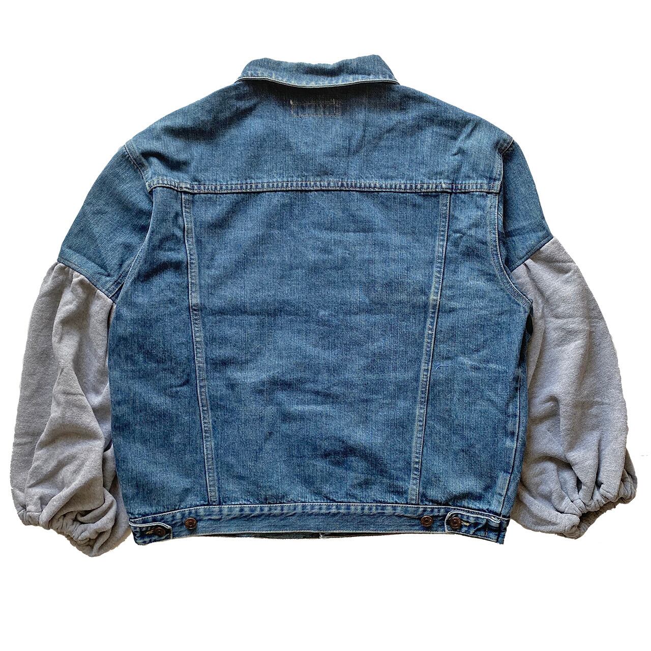 ユーズドのデニムジャケットを使用。解体~再構築、スウェットをバルーン袖に新たなデザインに仕上げました。