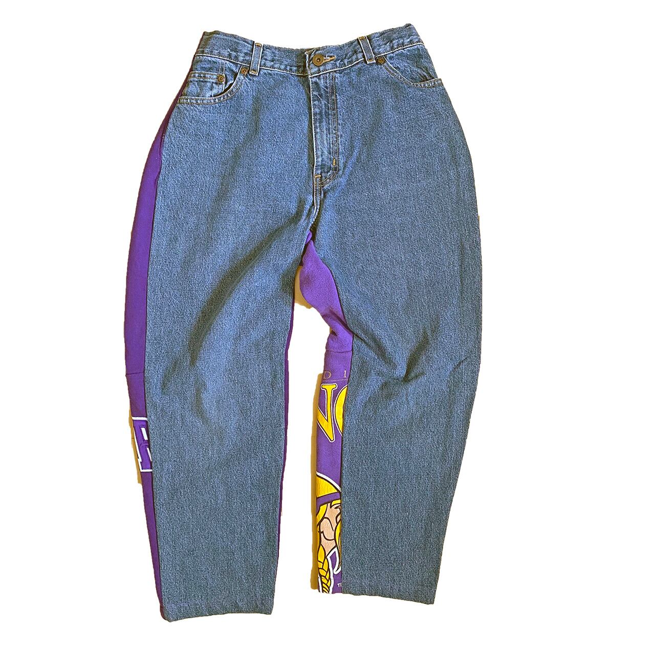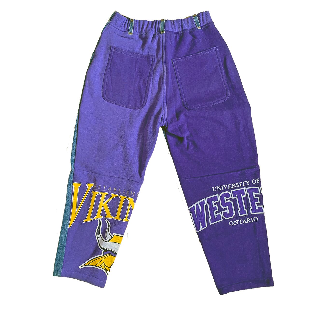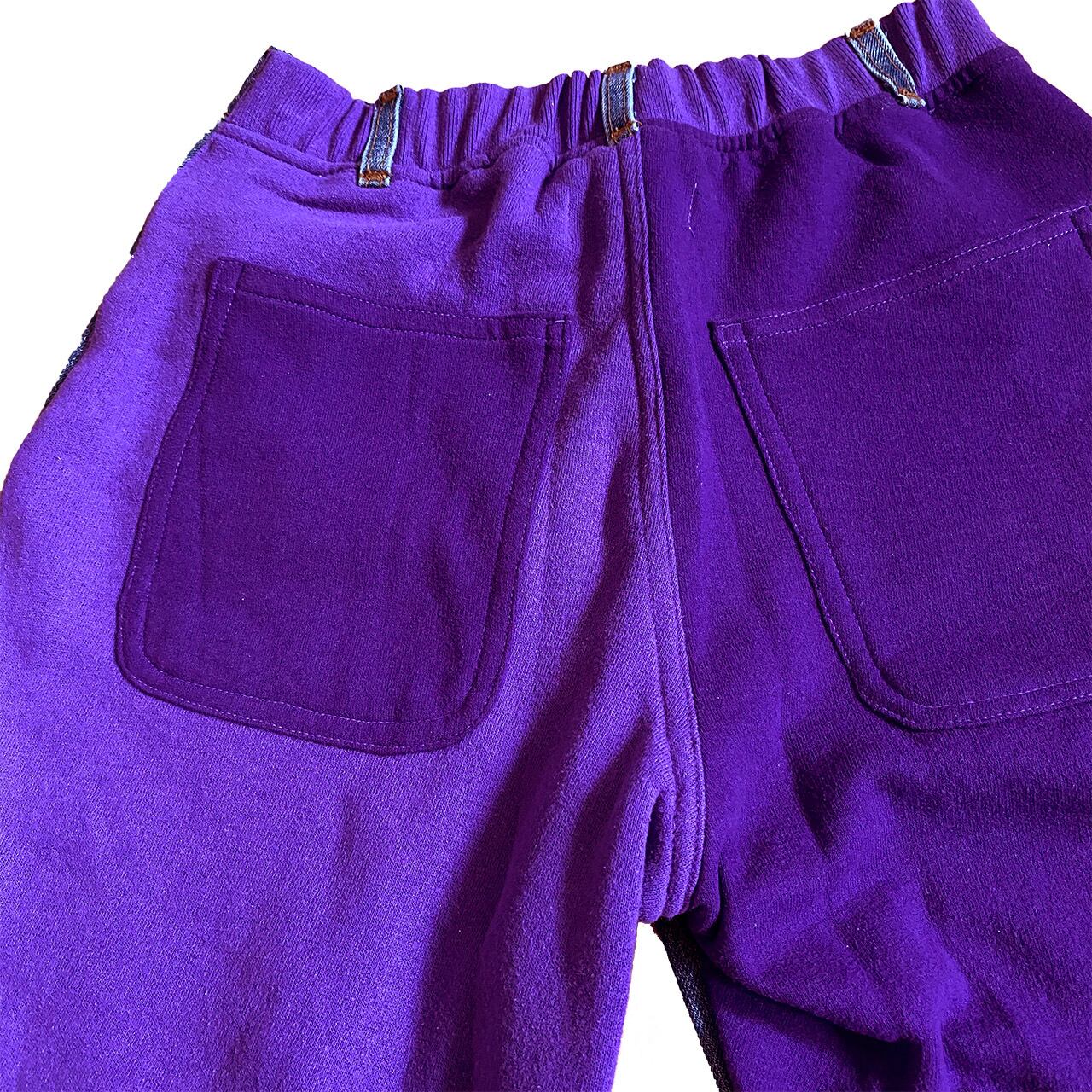 FRONTは、デニムパンツ。BACKはスェットのパッチワーク。