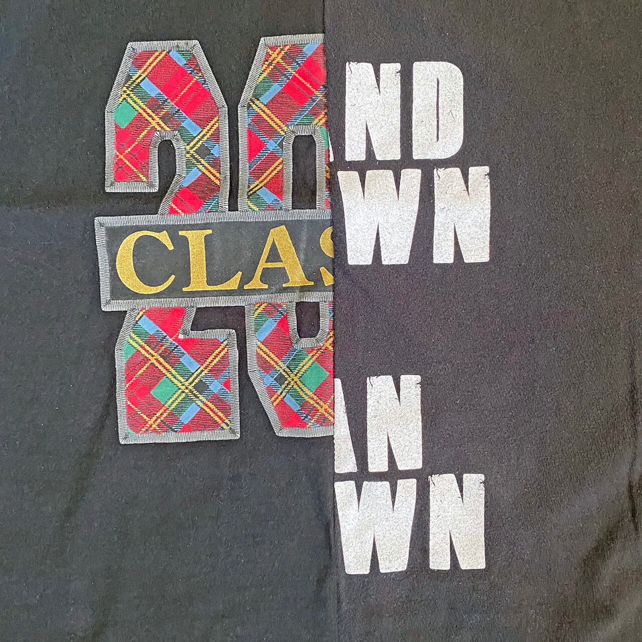 センターでユーズドのTシャツをアシメトリーにドッキング。