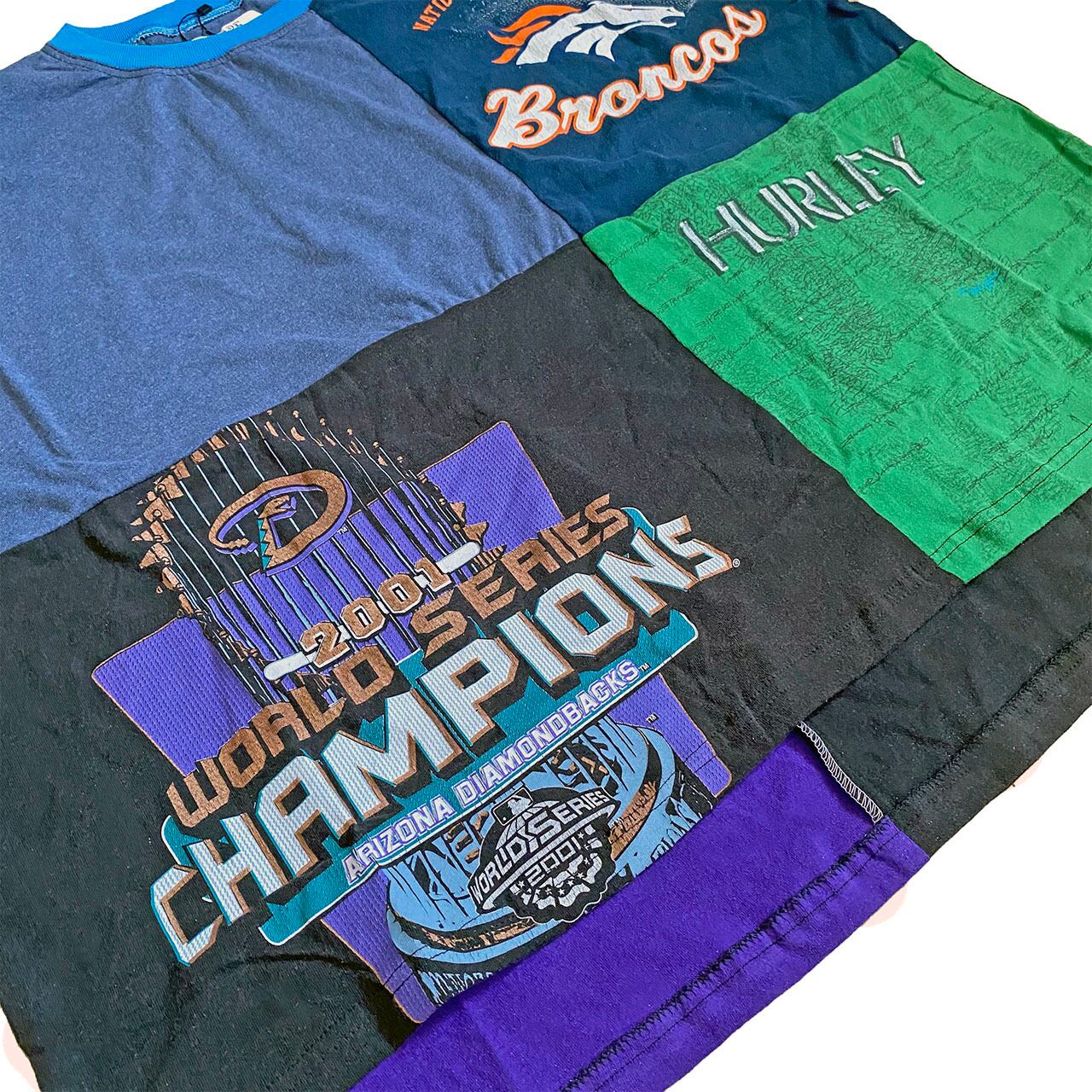 8枚の ユーズドTシャツを使ってパッチワークしてBIGサイズにリメイク。