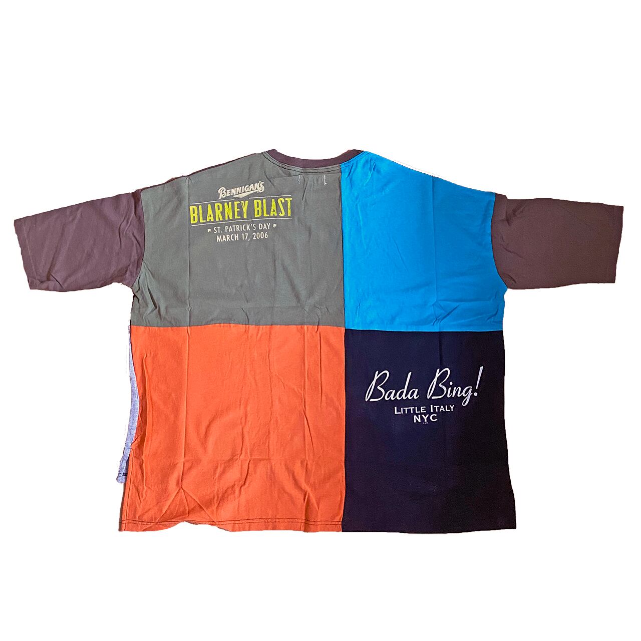 8枚の ユーズドTシャツを使ってパッチワークしてBIGサイズにリメイク。
