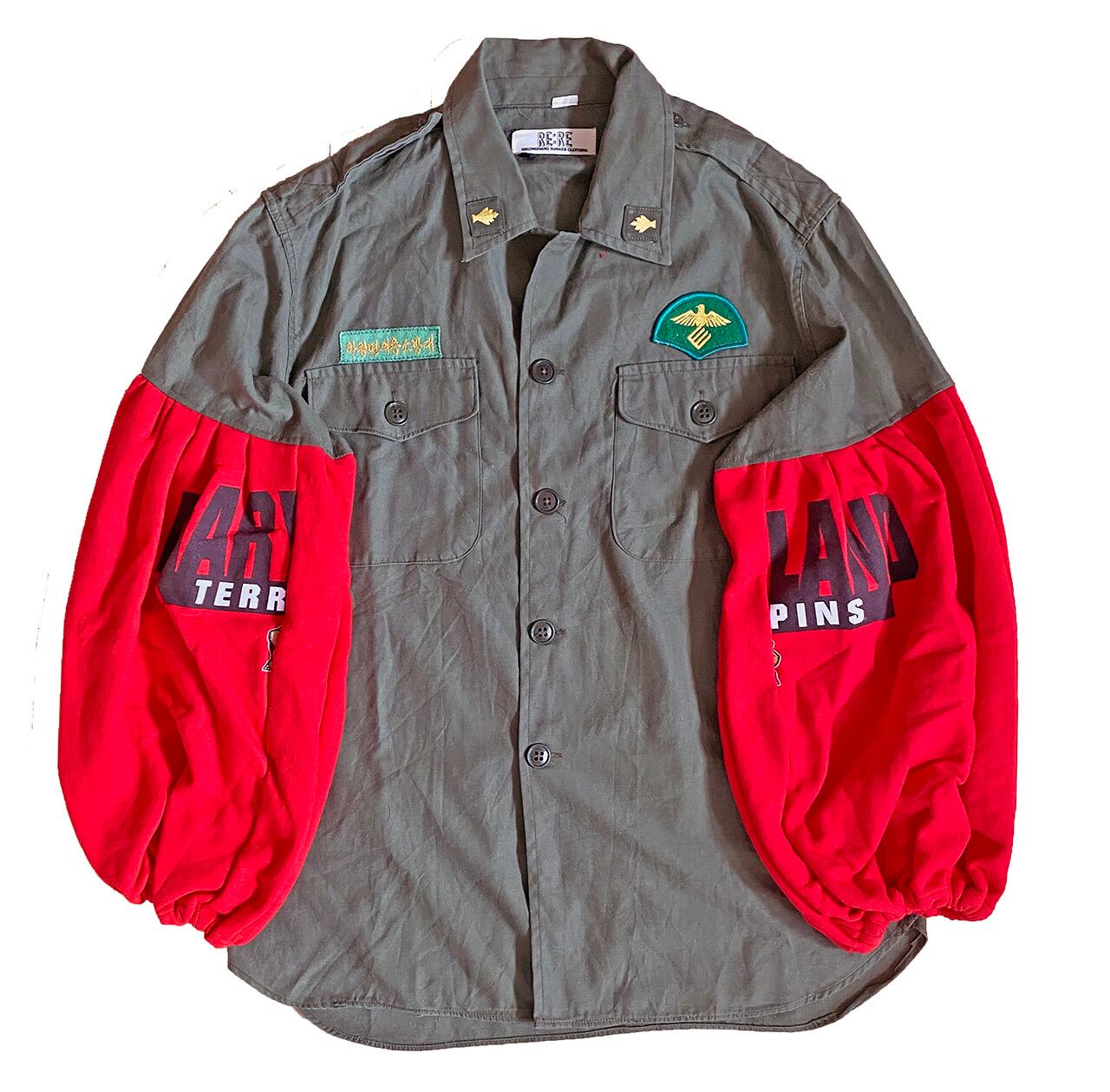 リメイク ARMYシャツ プリントスウェット バルーン袖 R-1963 B ①