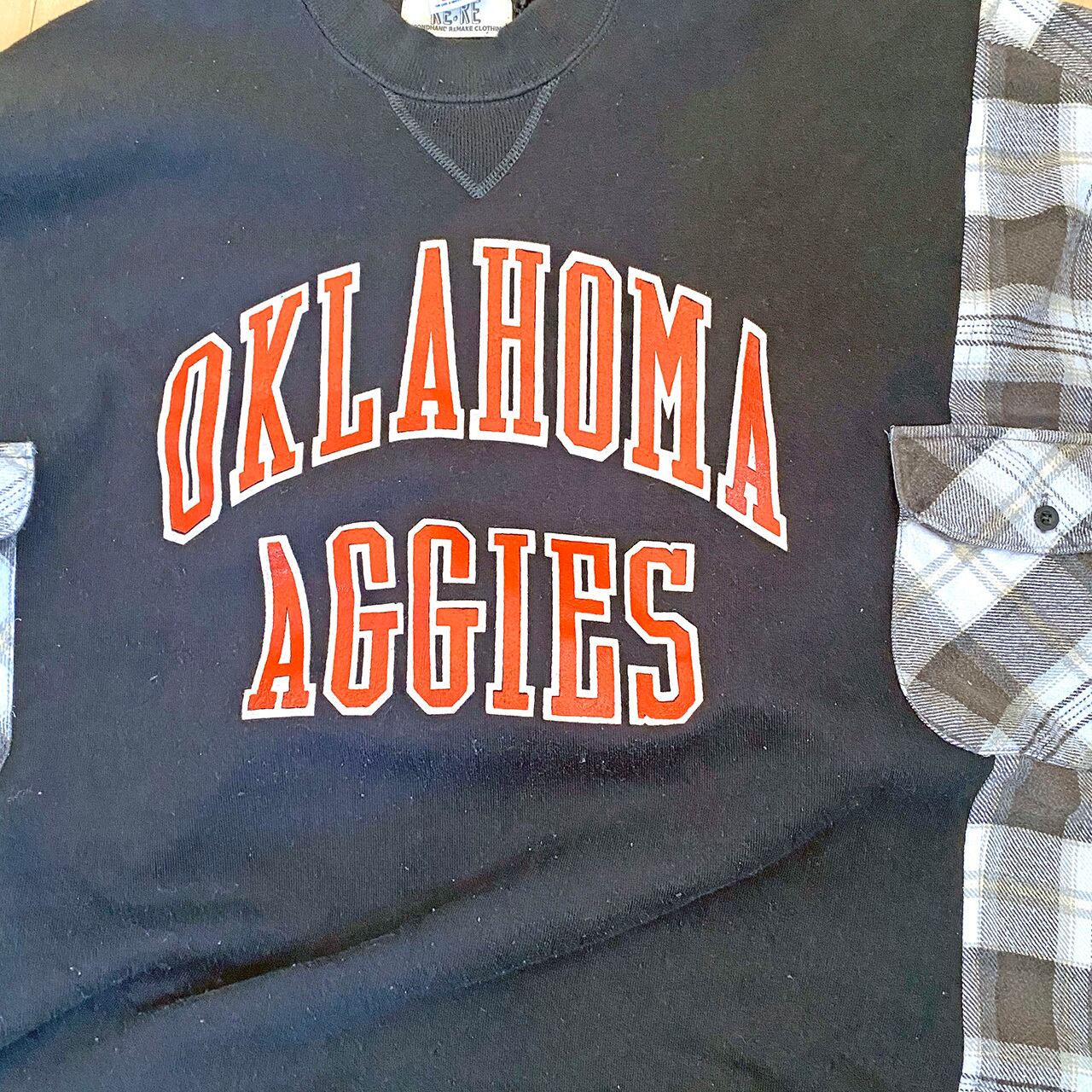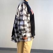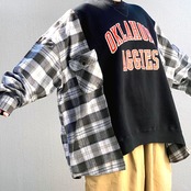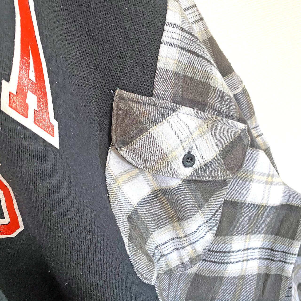 リメイク スウェット x ネルシャツB ワイドプルオーバー(男女兼用) エコ サステナビリティ ヴィンテージ 再構築 一点物 R-1875