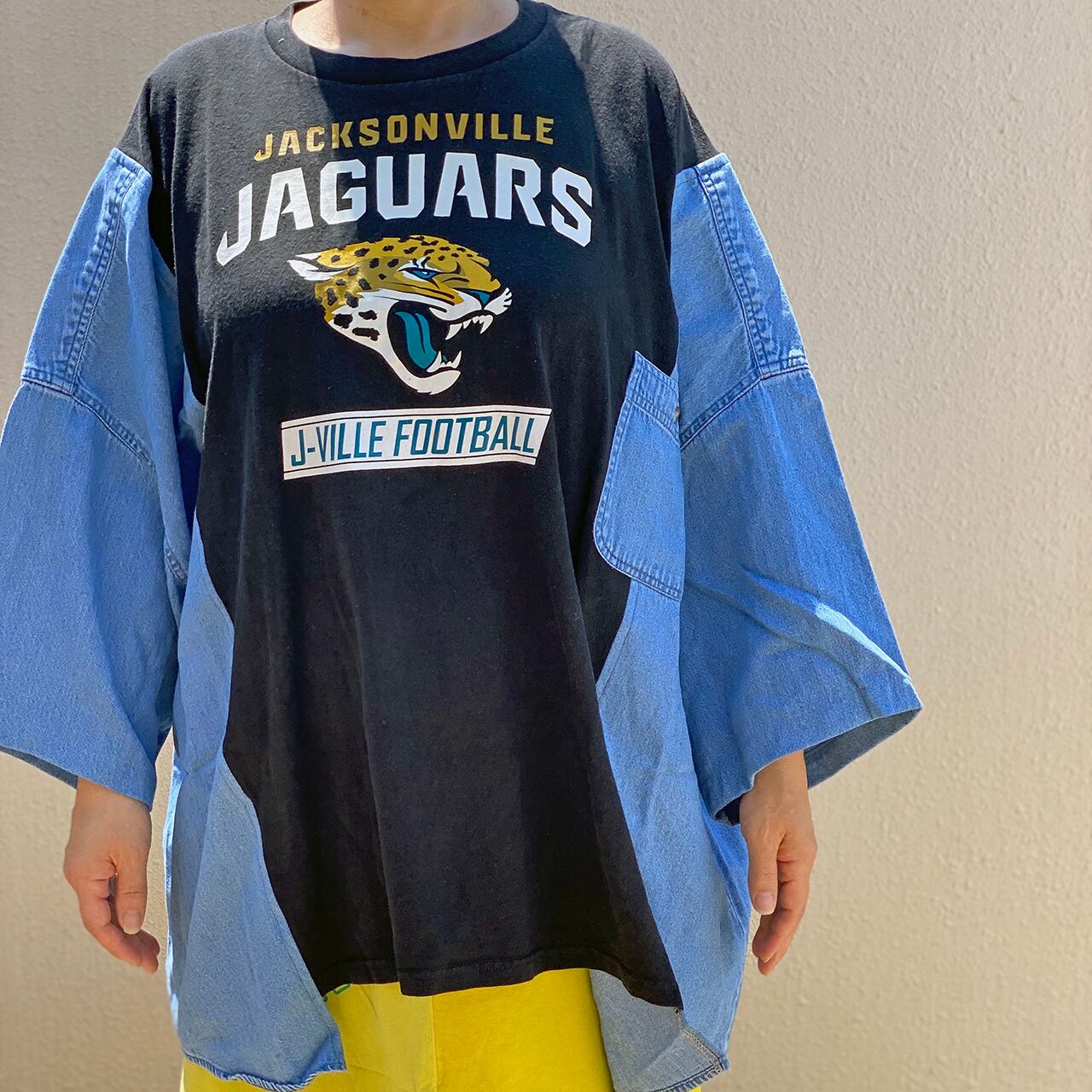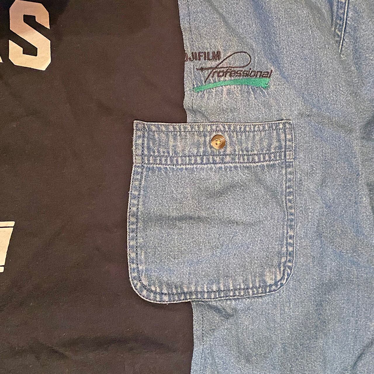 リメイク プリントTシャツ ドッキング デニムシャツ ワイドプルオーバーR-1905JG ③u (男女兼用)エコ サステナビリティ ヴィンテージ 再構築 一点物 R-1905 G