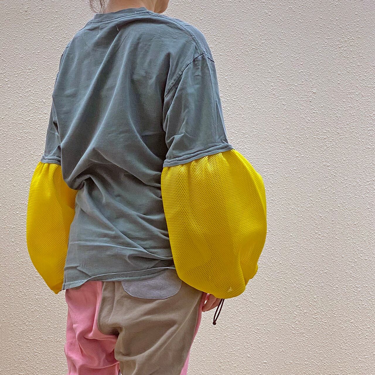 ユーズドのTシャツにメッシュの袖をドッキング。