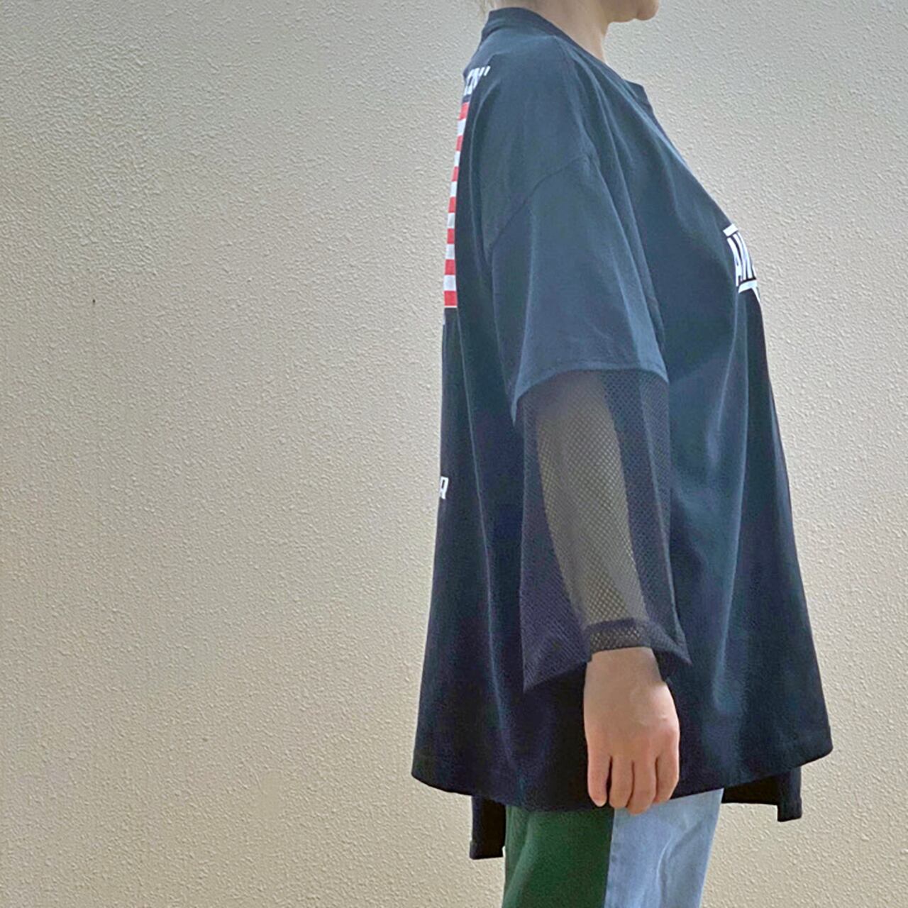 アシメトリー HARF & HARF メッシュワイド袖 Tシャツ R-1911 D ③c(男女兼用)