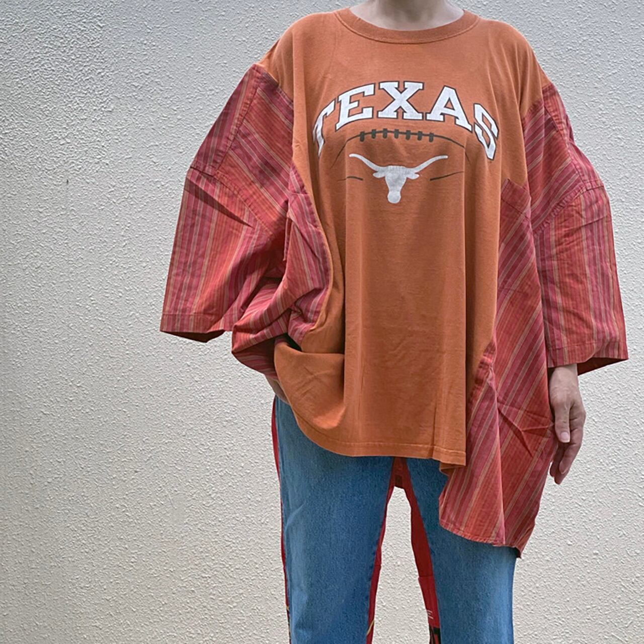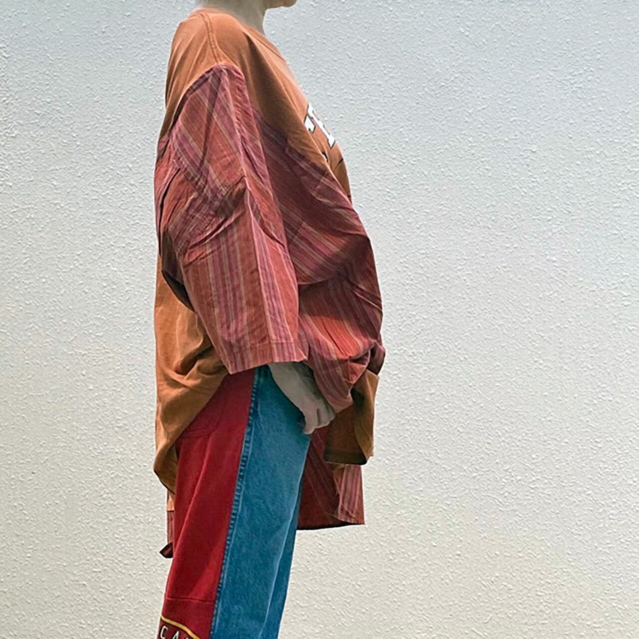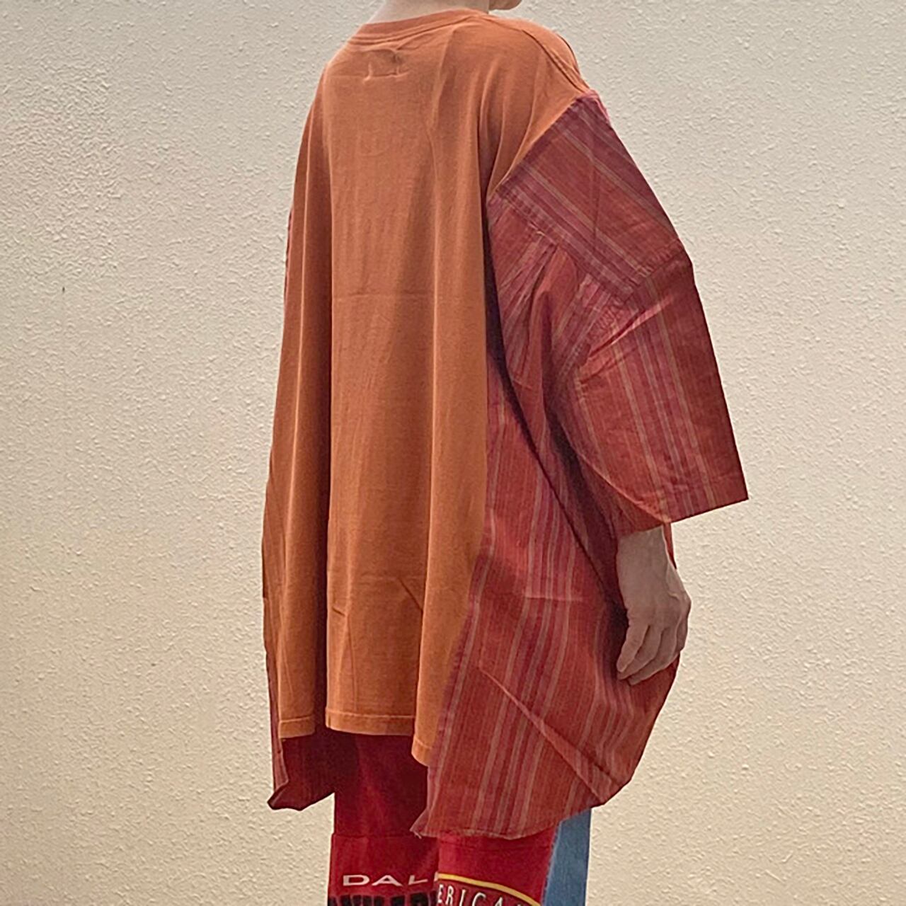 リメイク プリントTシャツ ドッキング ストライプシャツ ワイドプルオーバー R-1906K ③u(男女兼用)エコ サステナビリティ ヴィンテージ 再構築 一点物