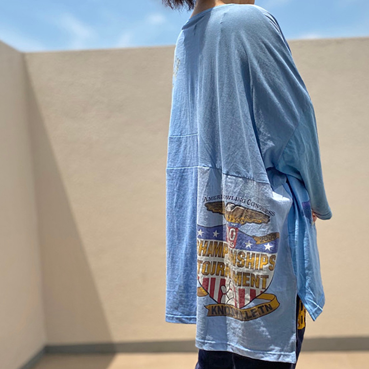 8枚の ユーズドTシャツを使ってパッチワークしてBIGサイズにリメイク。
