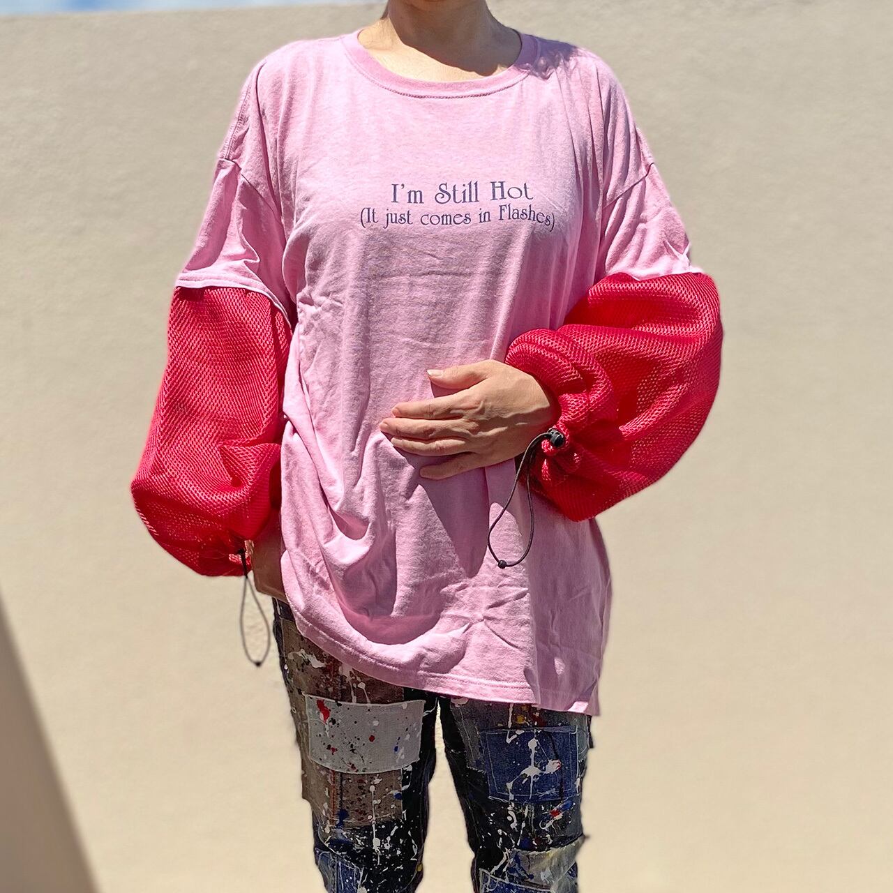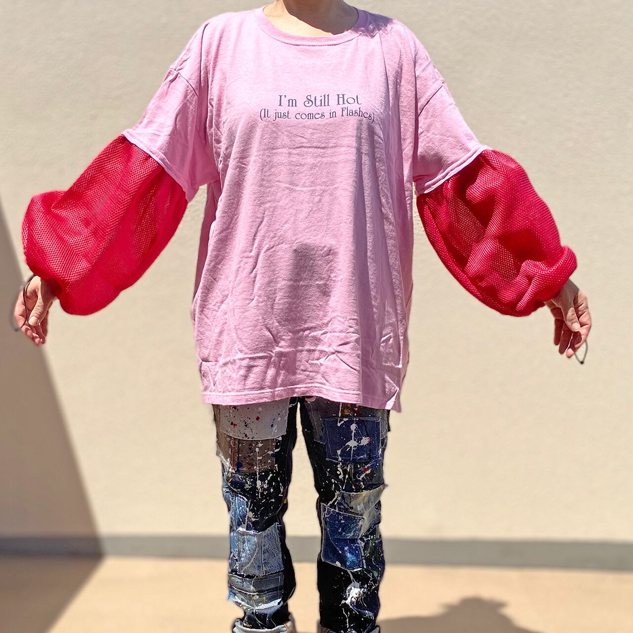 ユーズドのTシャツにメッシュの袖をドッキング。