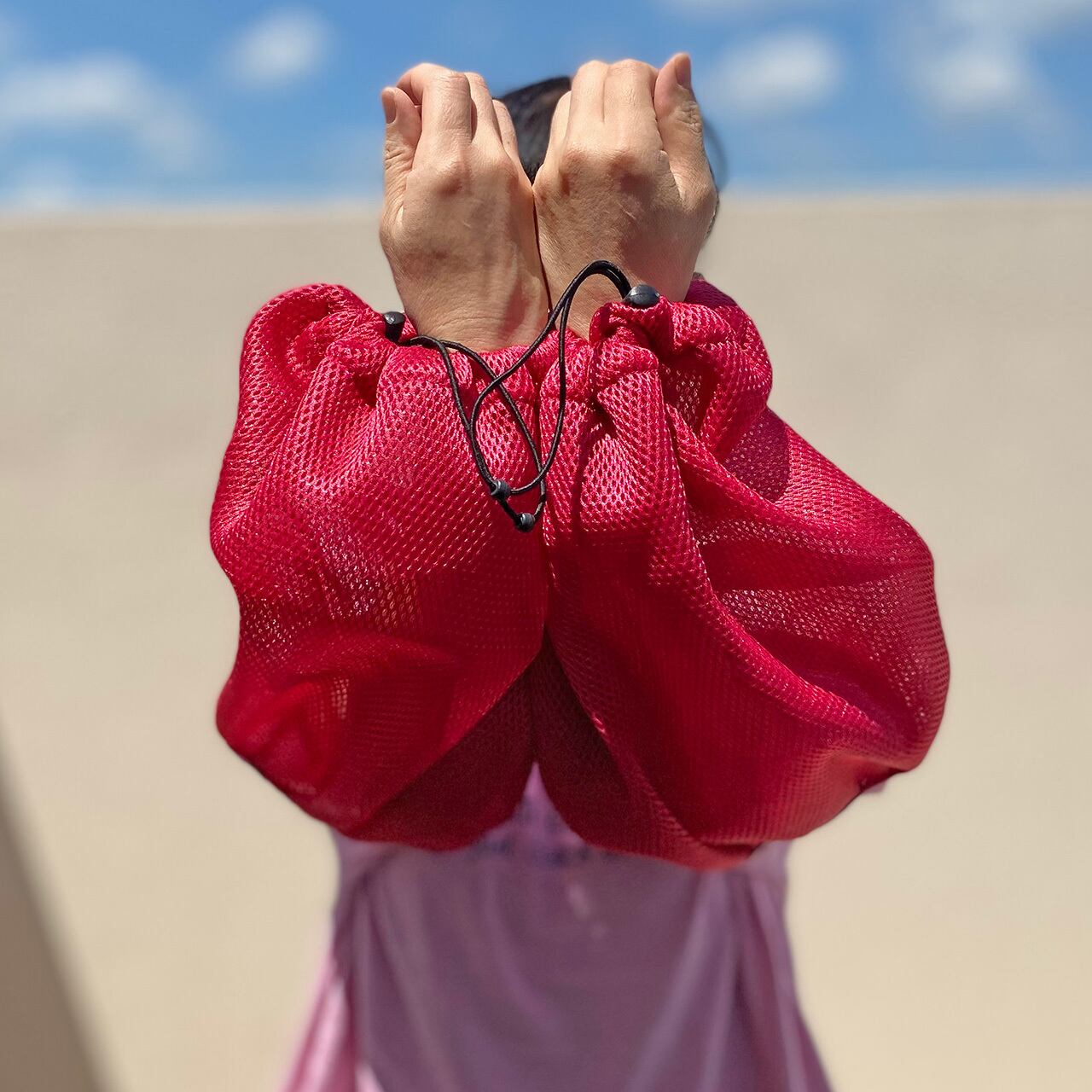 大胆に大きいワイドで鮮やかなカラーの袖が個性的な一枚です。