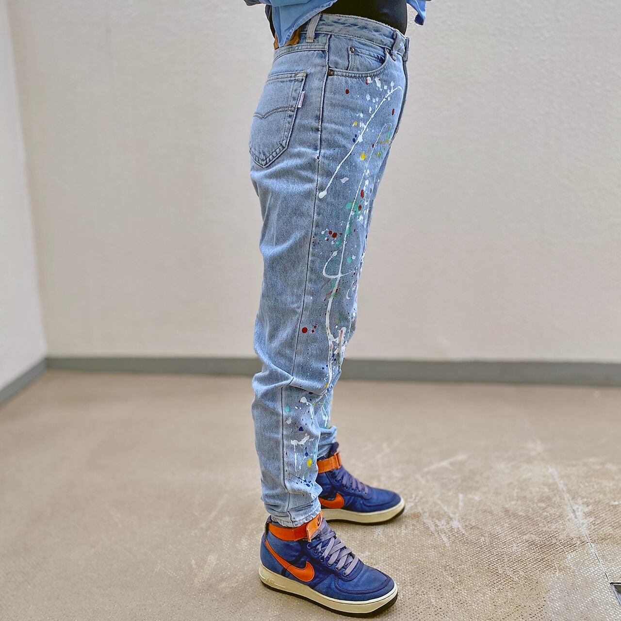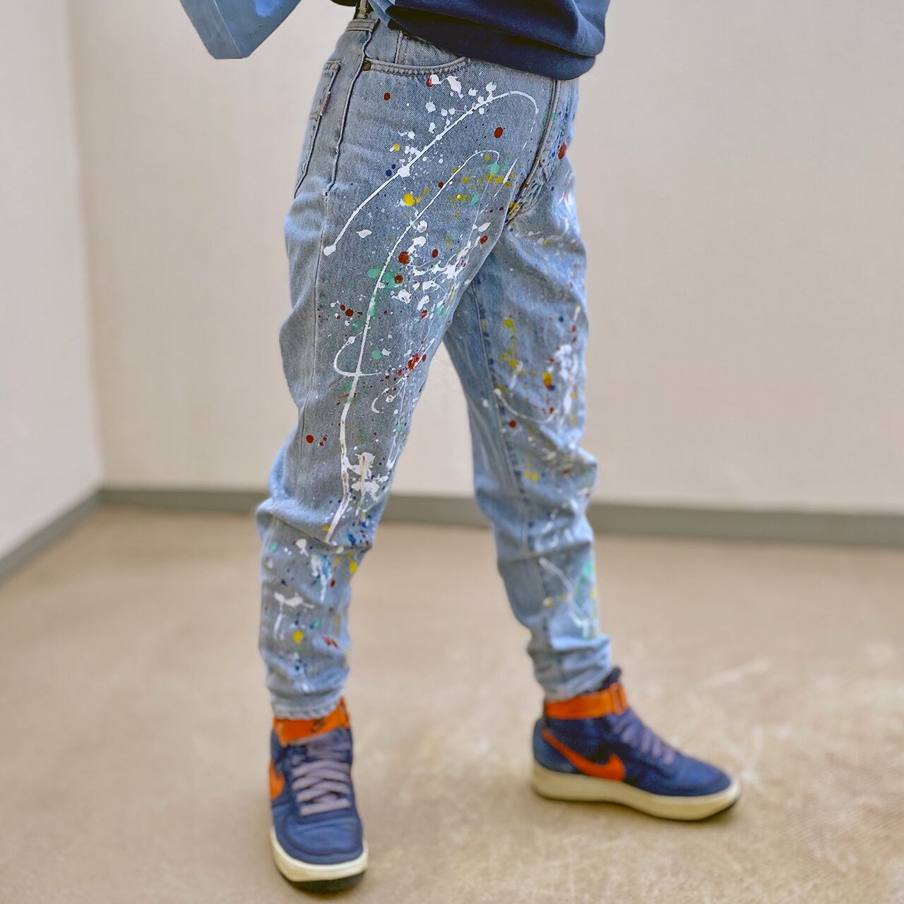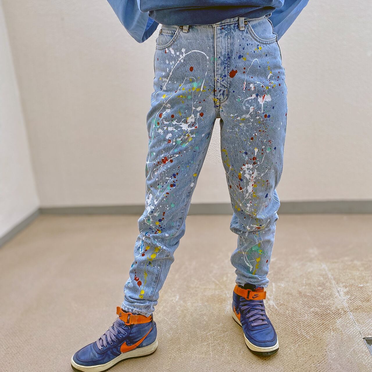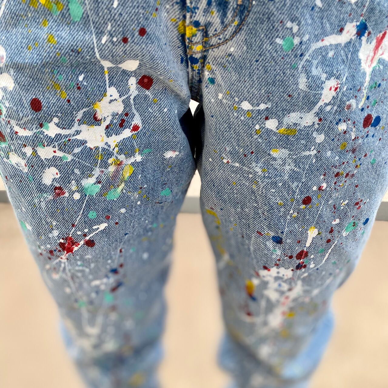 大胆にペイントしたデニムパンツです。