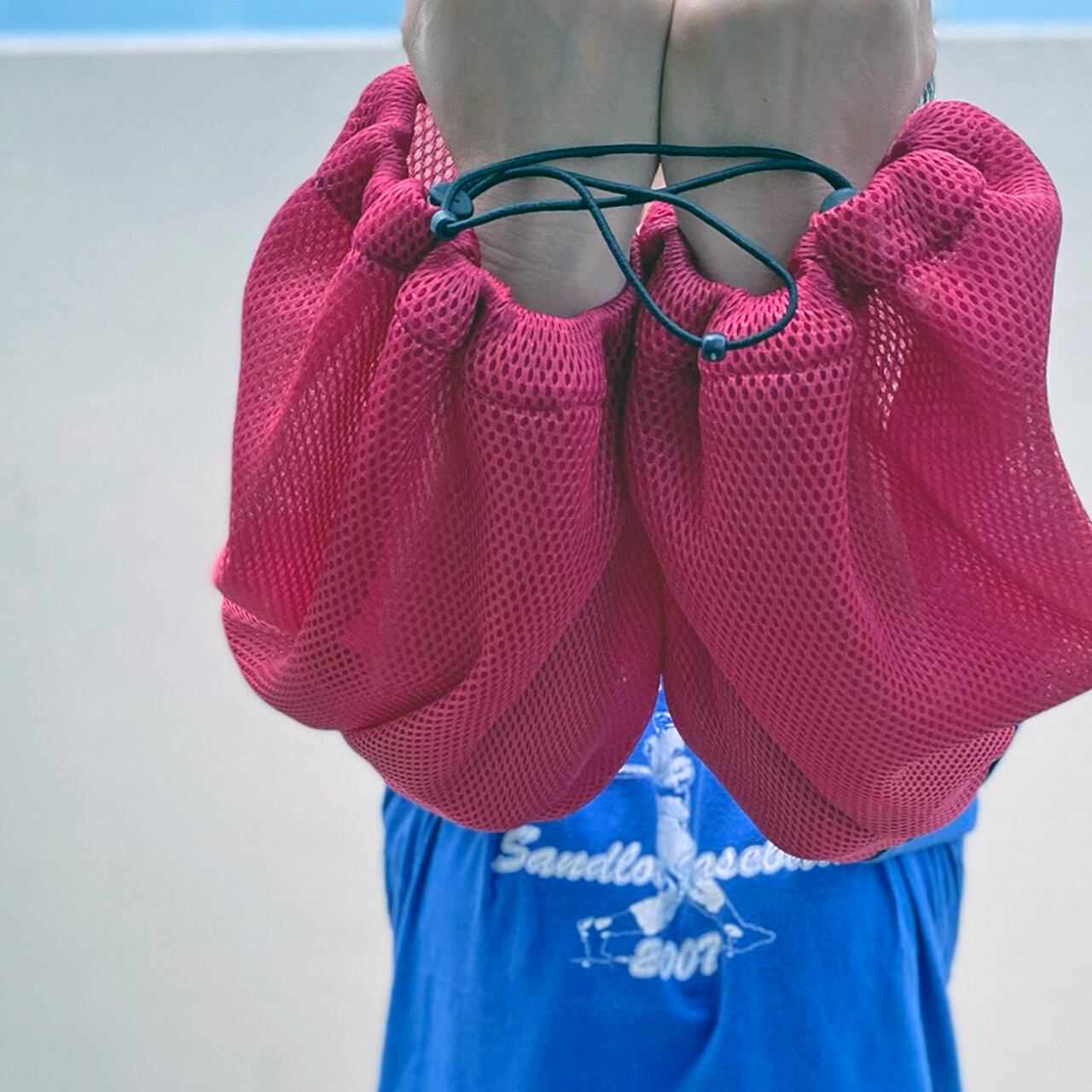 大胆に大きいワイドで鮮やかなカラーの袖が個性的な一枚です。