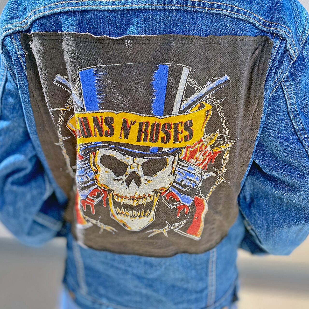 LEVISEのデニムジャケットにガンズのロックTシャツ使ってアップサイクル。