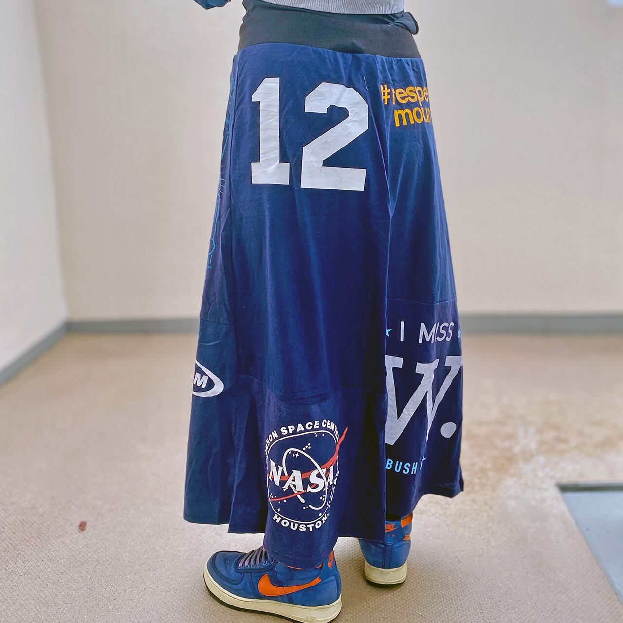ユーズドTシャツを使ってパッチワークしてスカートにリメイク。