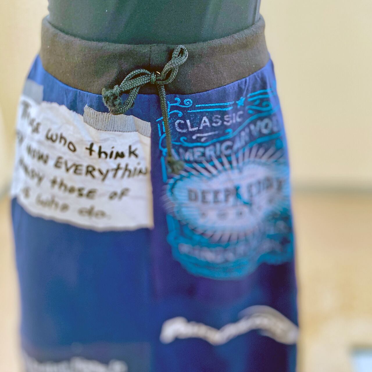 様々なプリントの柄がパッチワークされリメイクならではの面白さがつまった仕上がりです。