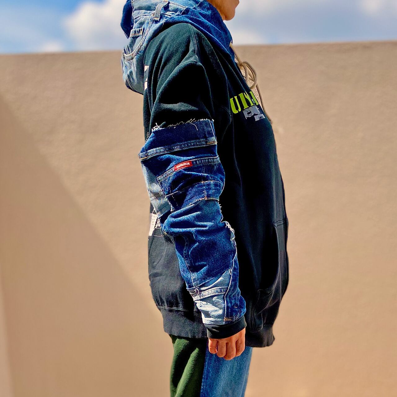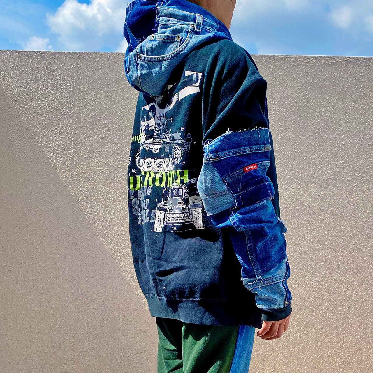 リメイク デニム パッチワーク 切替 フルZIP パーカーR-2008C ⑤u(男女兼用)エコ サステナビリティ ヴィンテージ 再構築 一点物
