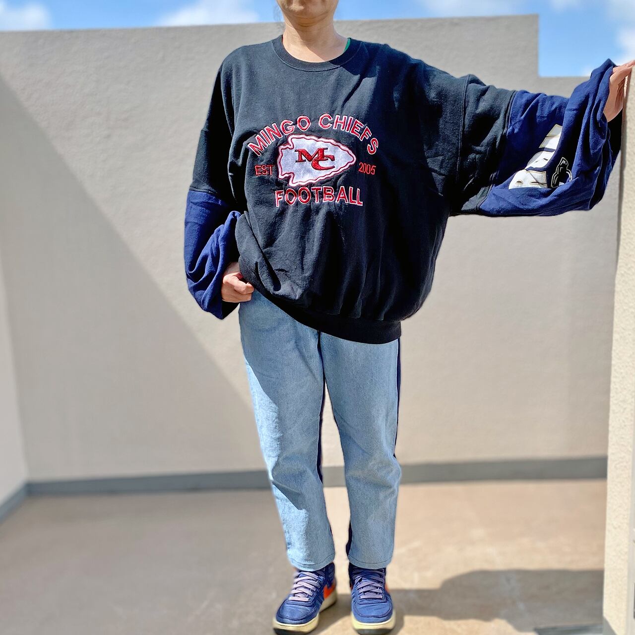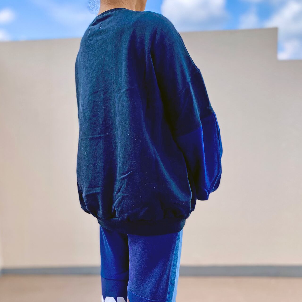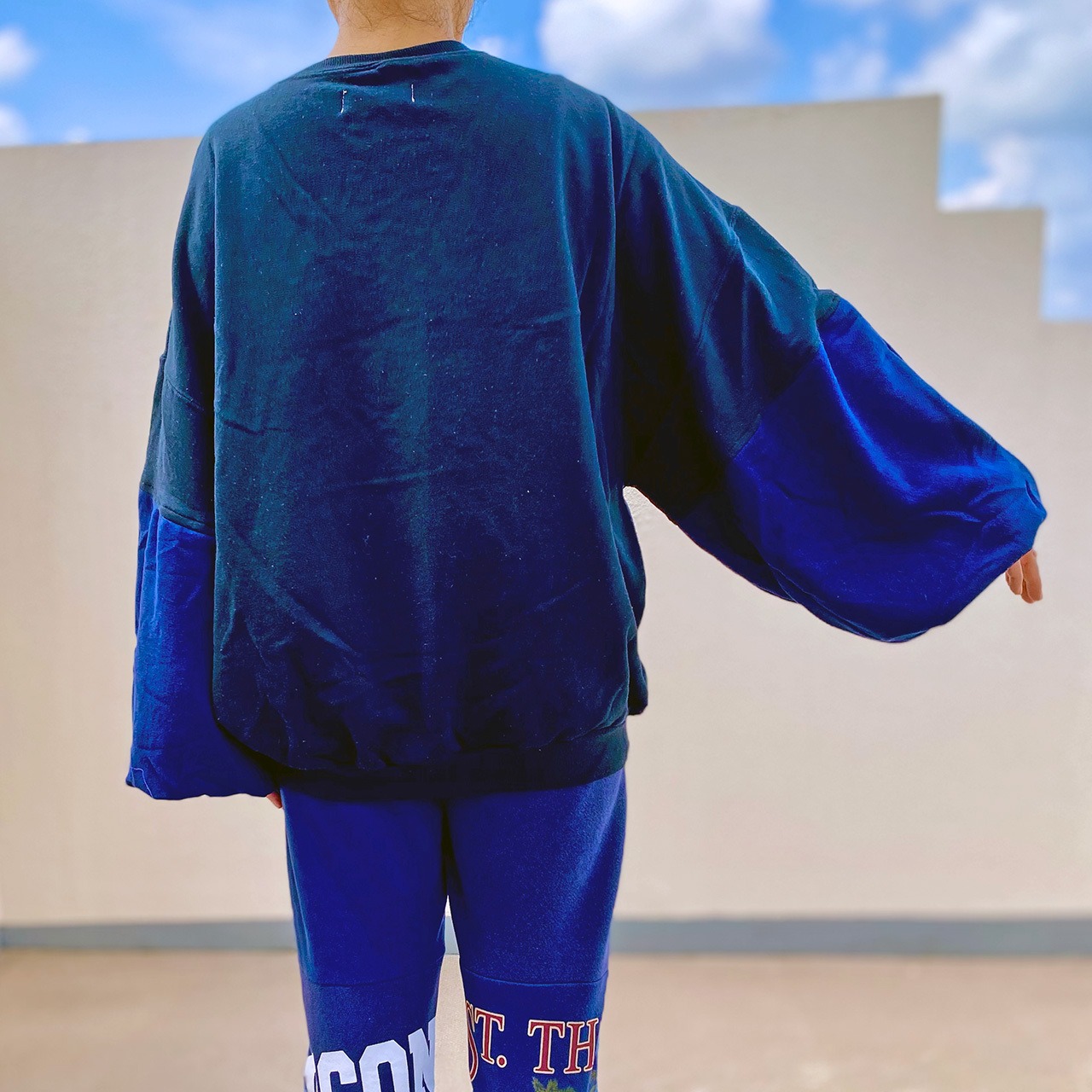 刺繍スウェットに、袖にプリントのスウェットを使ってバルーン袖にリメイク。