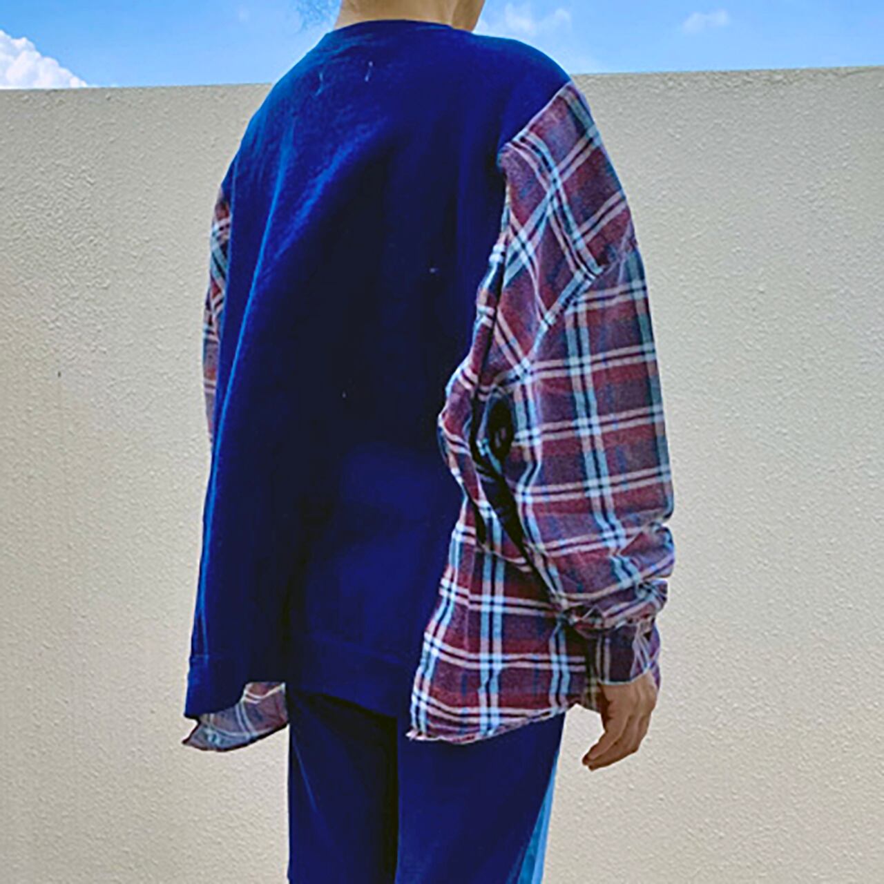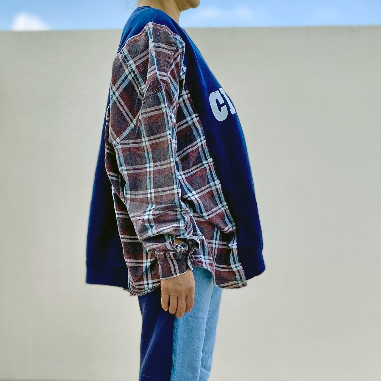 リメイク スウェット x ネルシャツR-1875 D ⑤u ワイドプルオーバー(男女兼用) エコ サステナビリティ ヴィンテージ 再構築 一点物