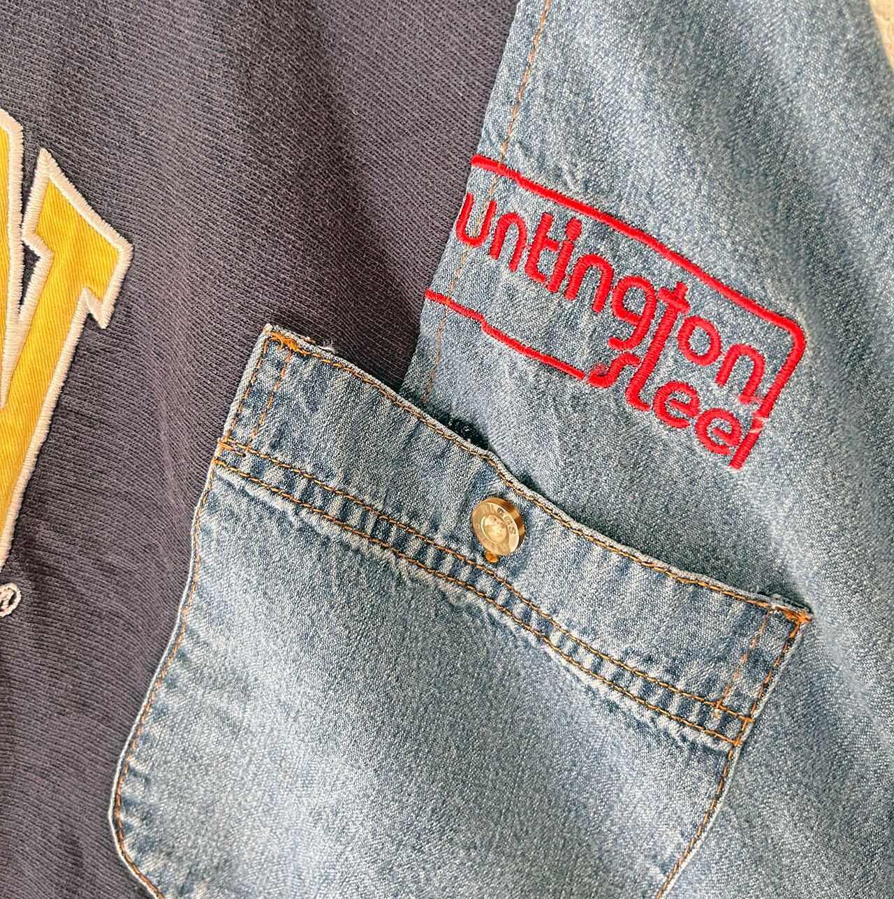 リメイク スウェット x デニムシャツ ワイドプルオーバーR-1874 ⑥A,B(男女兼用) エコ サステナビリティ ヴィンテージ 再構築 一点物 R-1873