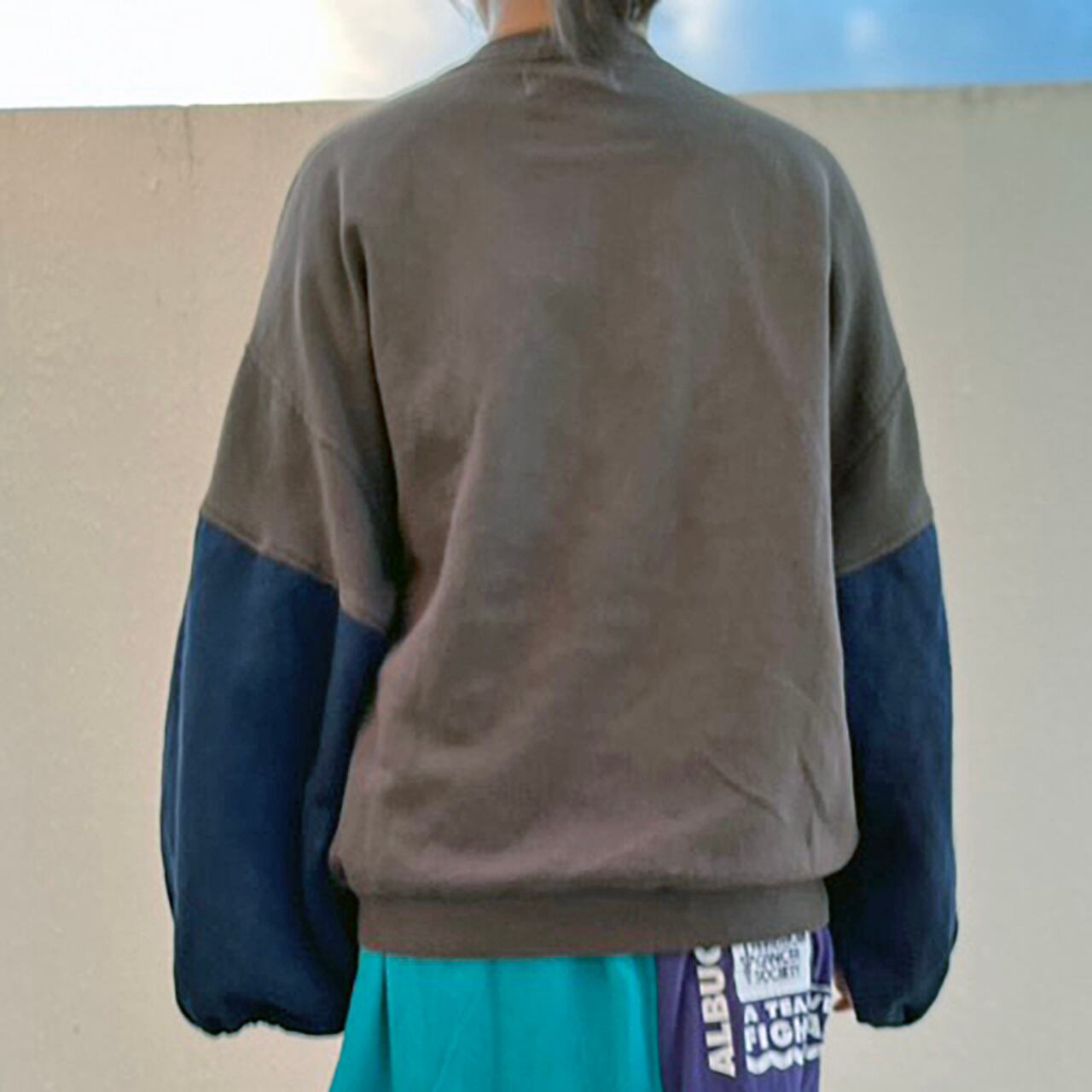 プリントスウェットに、袖にプリントのスウェットを使ってバルーン袖にリメイク。