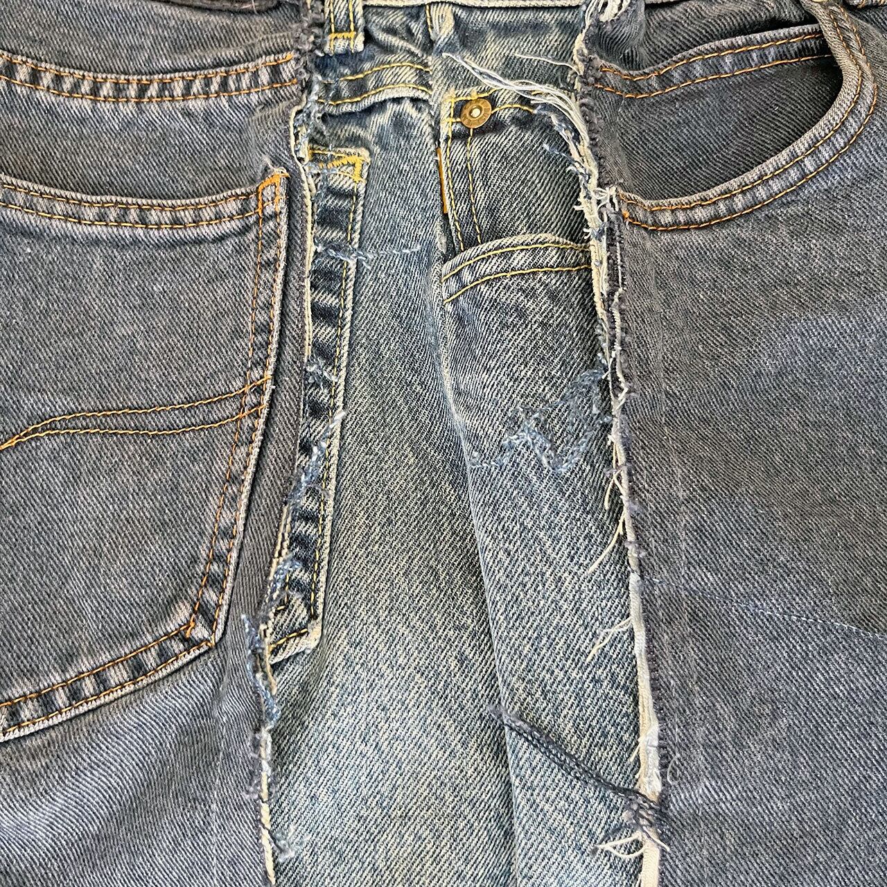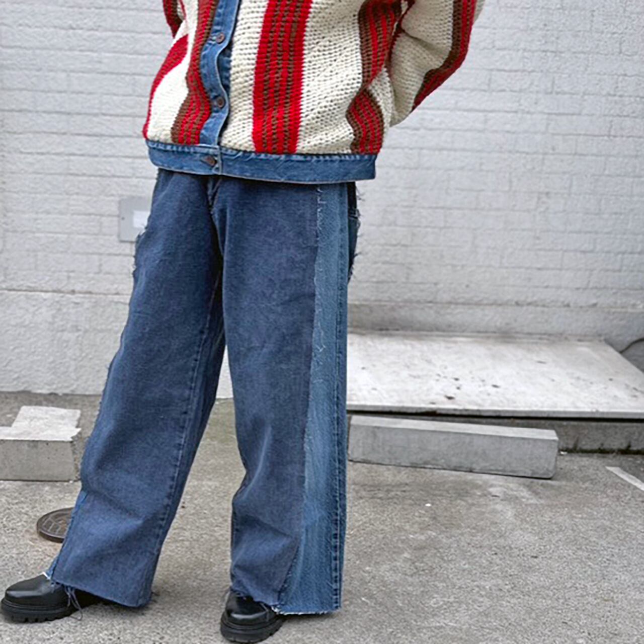 2枚のデニムパンツをワイドにドッキングしたデニムパンツです。