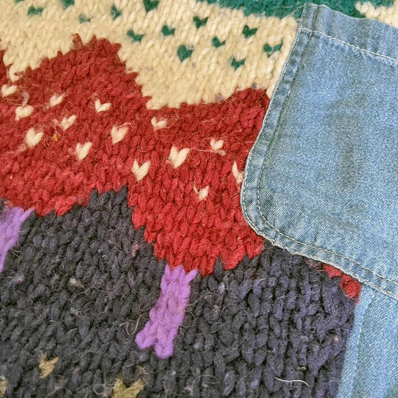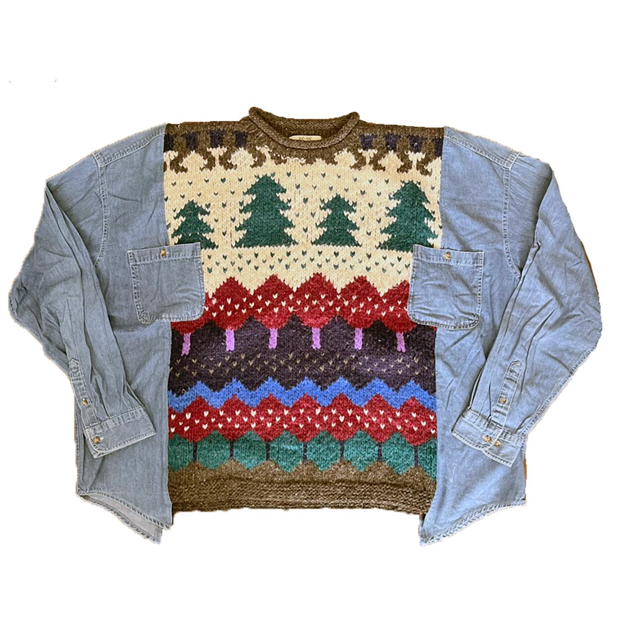 リメイク セーター x ネルシャツ R-1957A ⑨ (男女兼用) エコ サステナビリティ ヴィンテージ 再構築 一点物