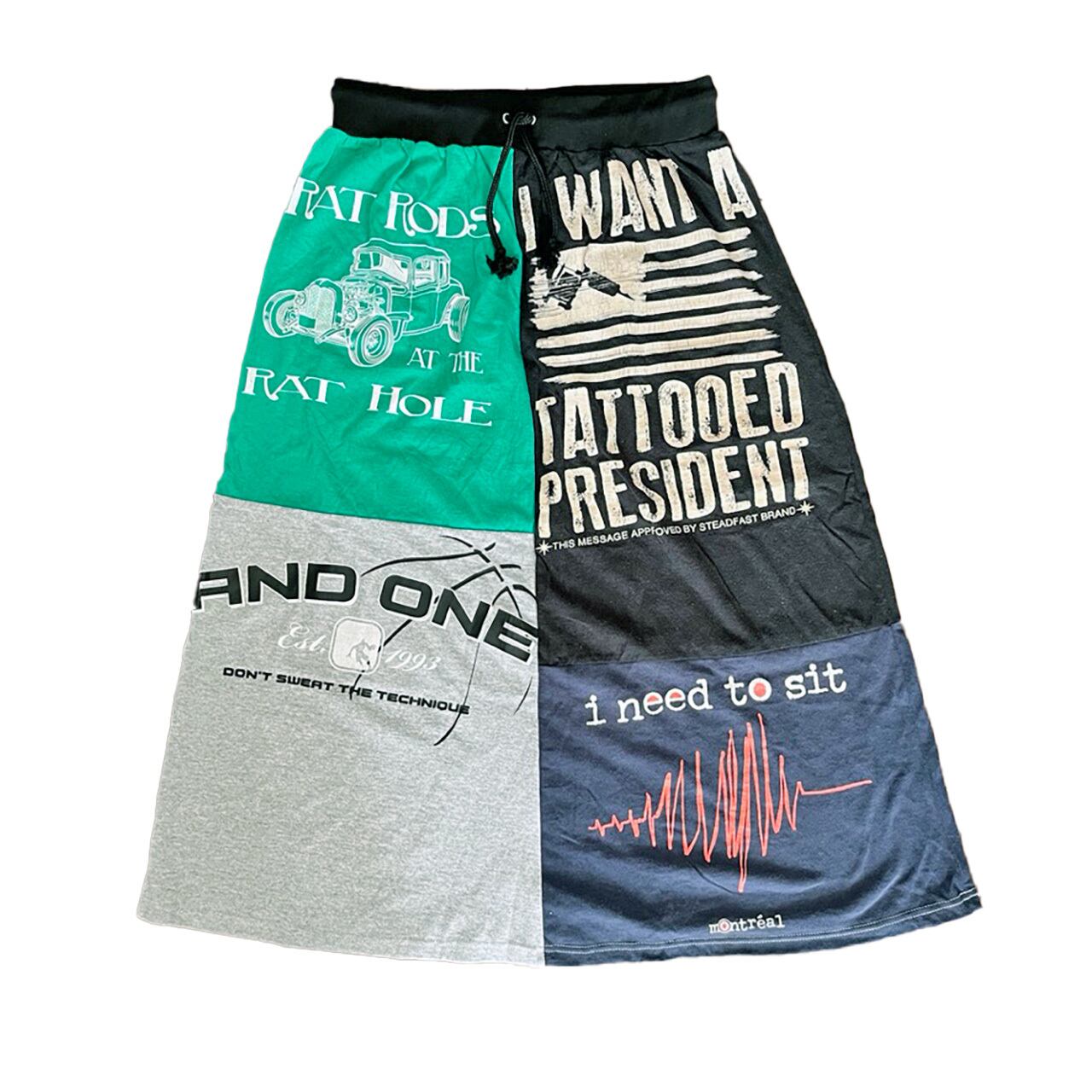 ユーズドTシャツを使ってパッチワークしてスカートにリメイク。