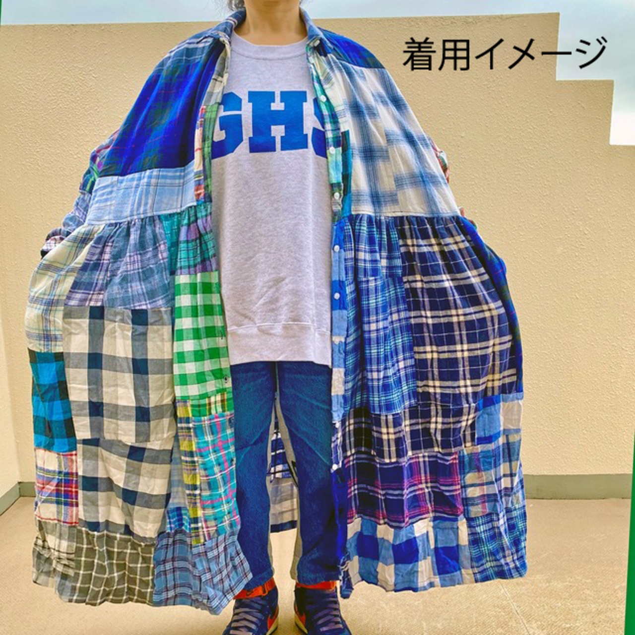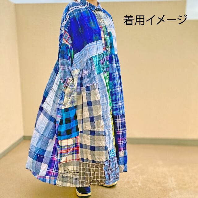 リメイク ワイド チェックワンピースR-2007C ⑨エコ サステナビリティ ヴィンテージ 再構築 一点物