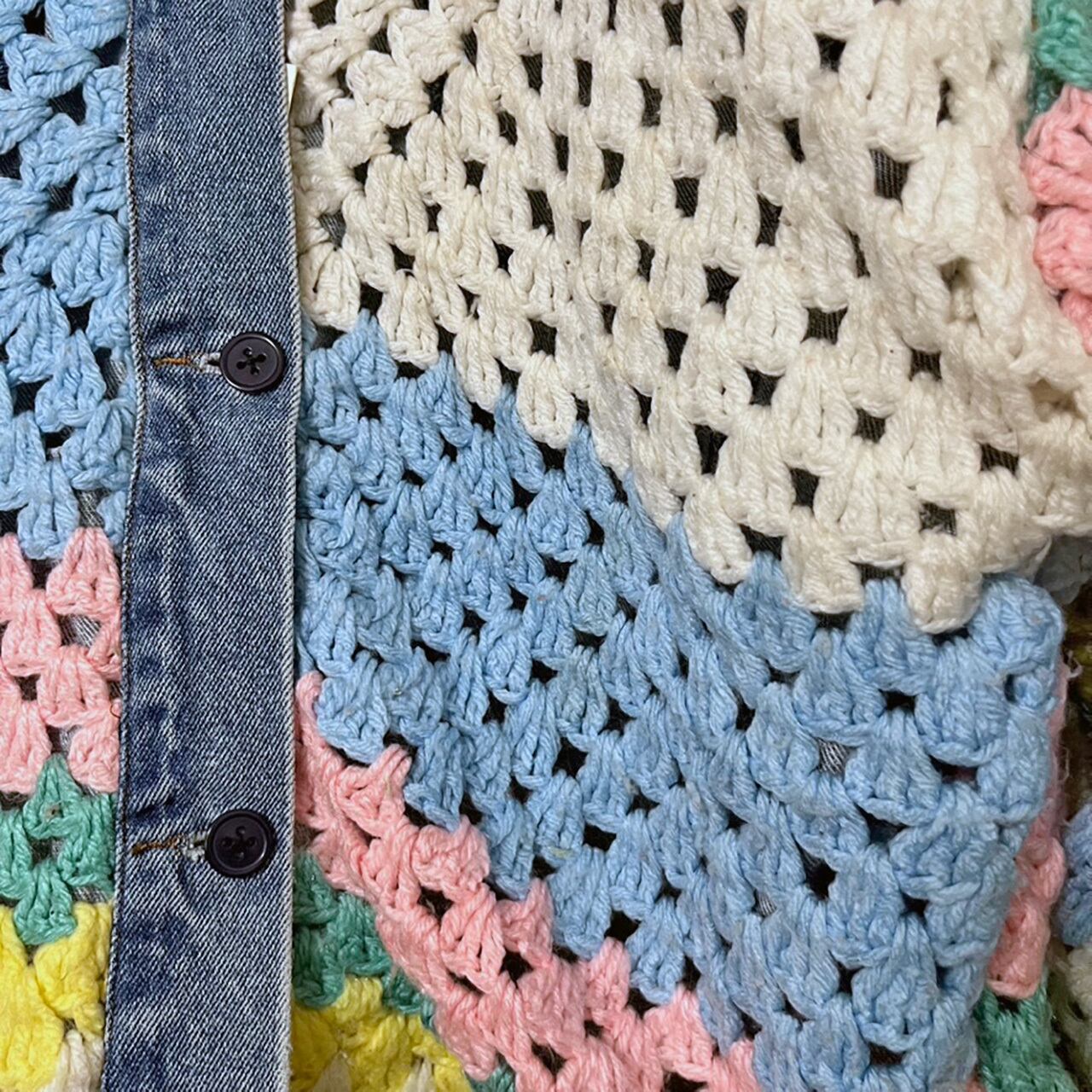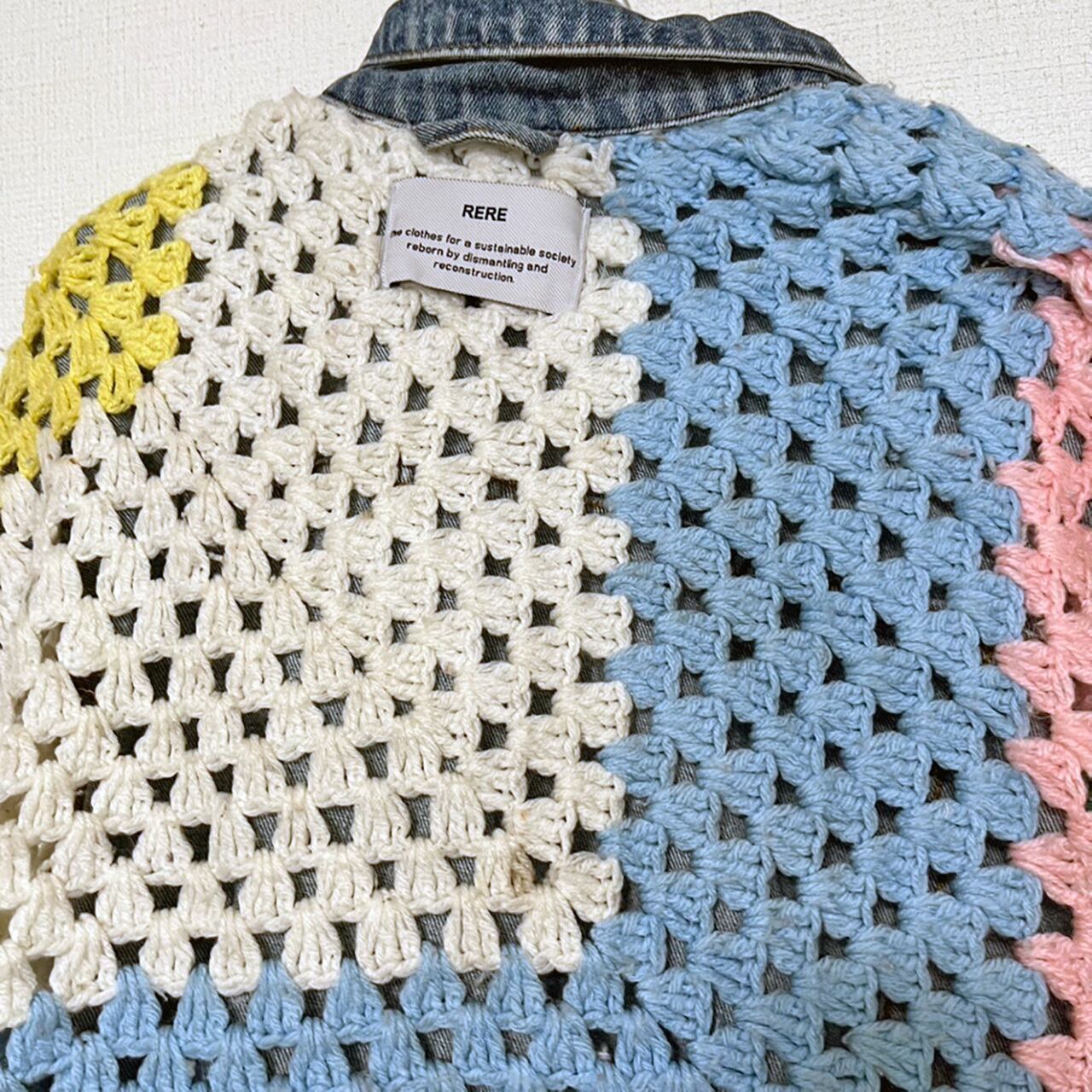 ユーズドのデニムジャケットとセーターを再構築したジャケット。