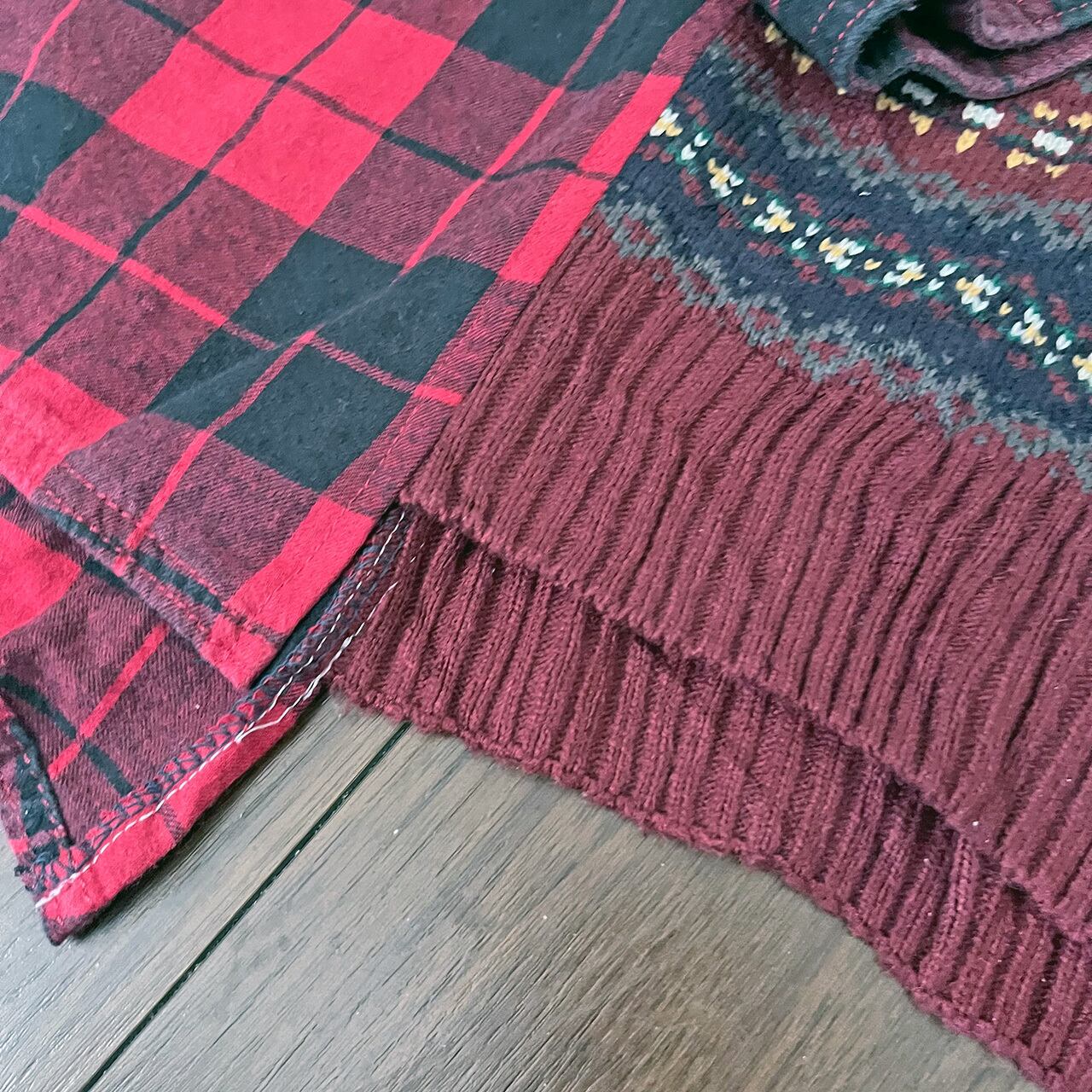 リメイク セーター x ネルシャツ R-1958C⑩(男女兼用)エコ サステナビリティ ヴィンテージ 再構築 一点物