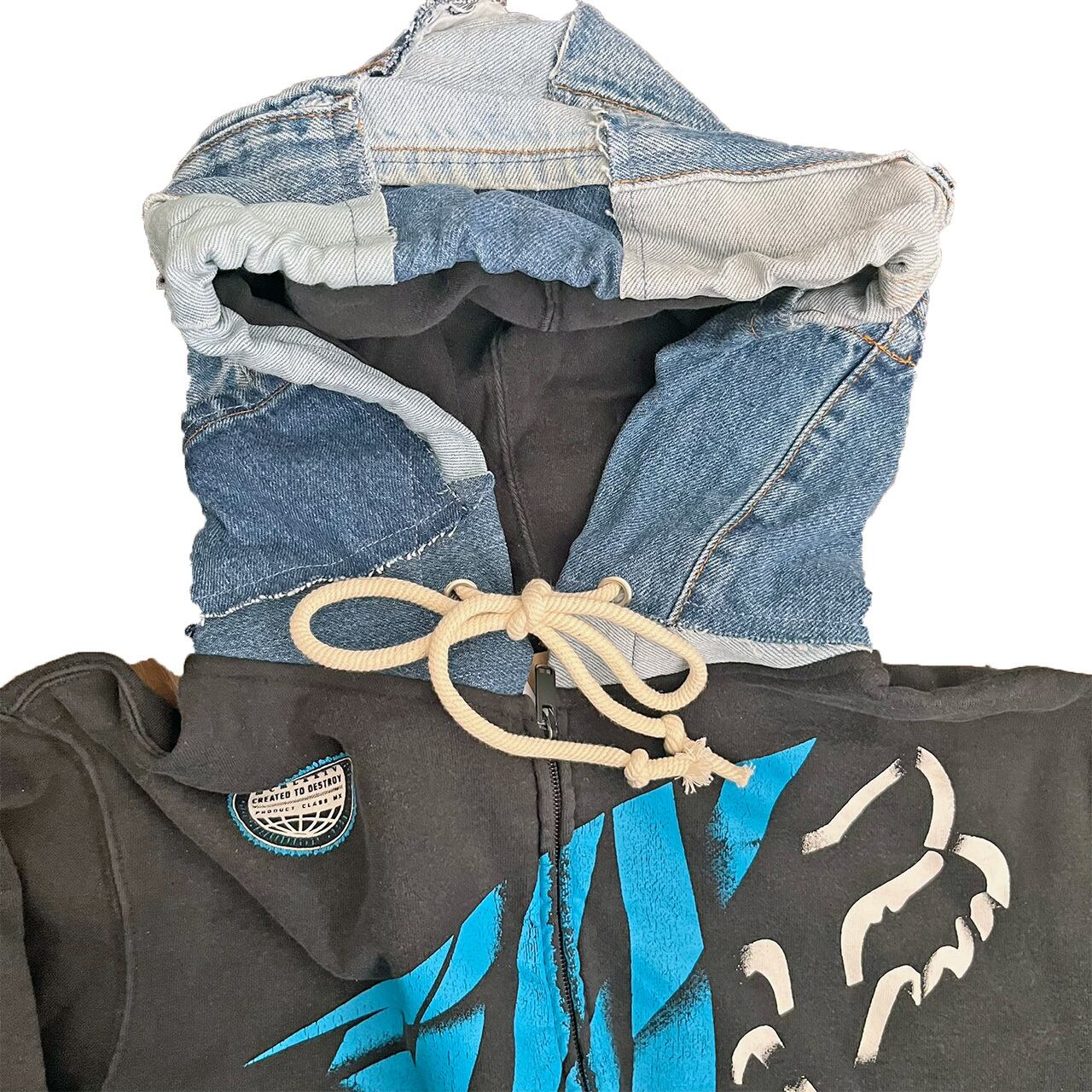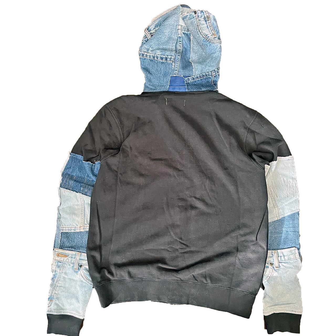 リメイク デニム パッチワーク 切替 フルZIP パーカーR-2008D ⑤u(男女兼用)エコ サステナビリティ ヴィンテージ 再構築 一点物