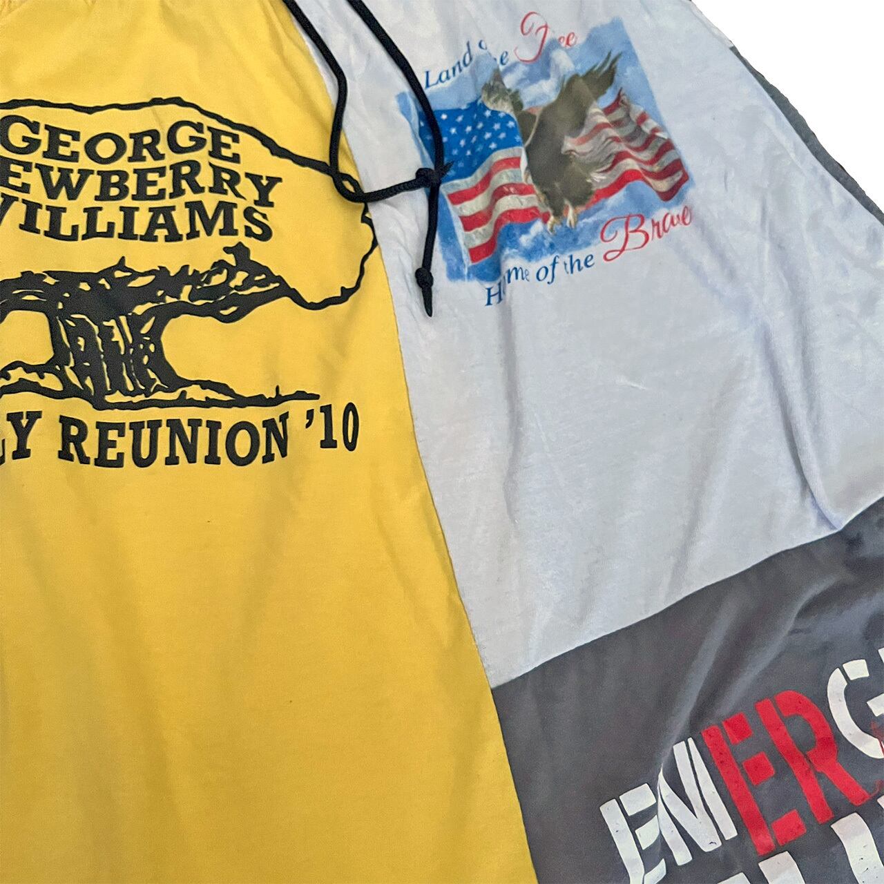 様々なプリントの柄がパッチワークされリメイクならではの面白さがつまった仕上がりです。